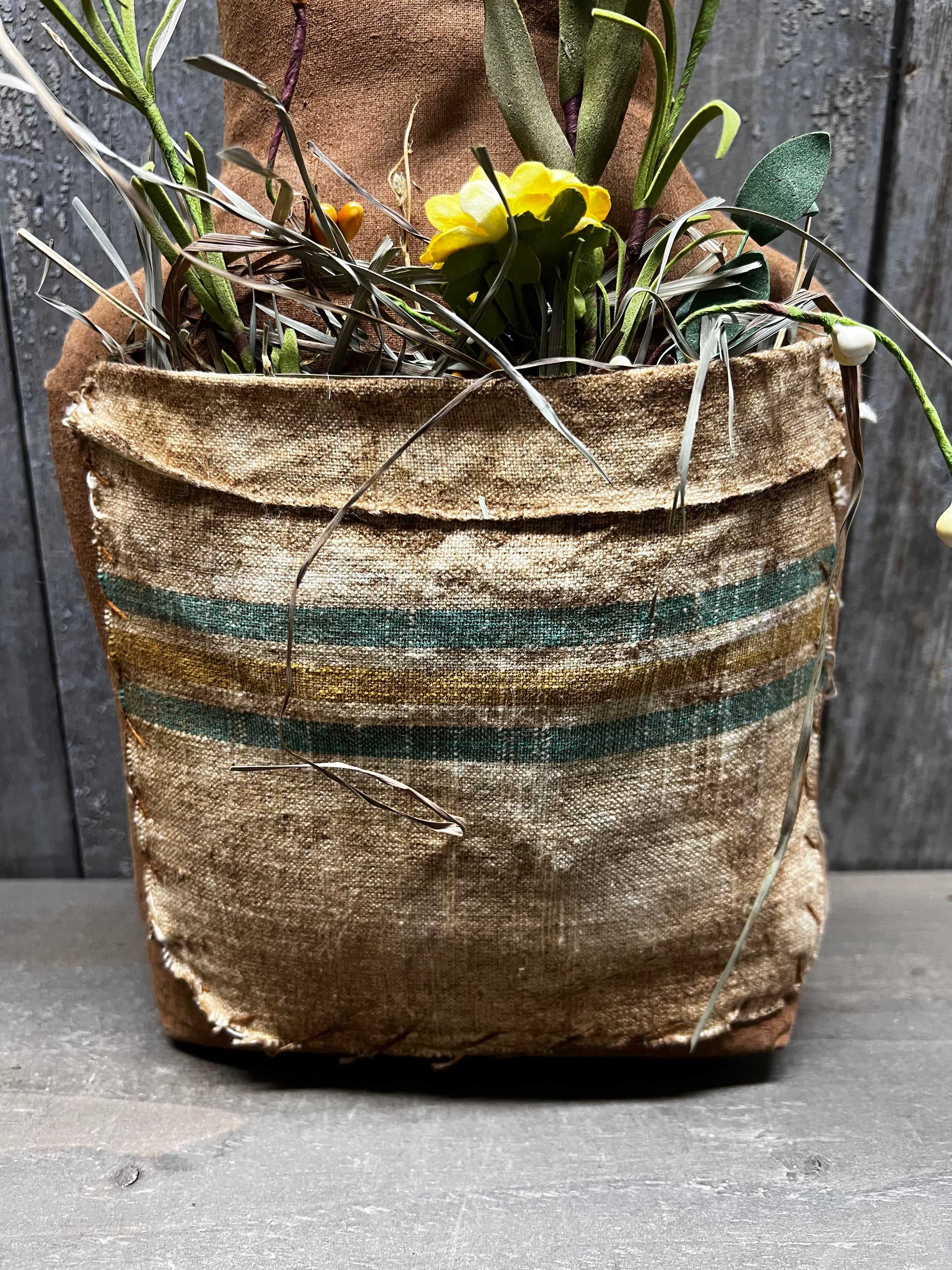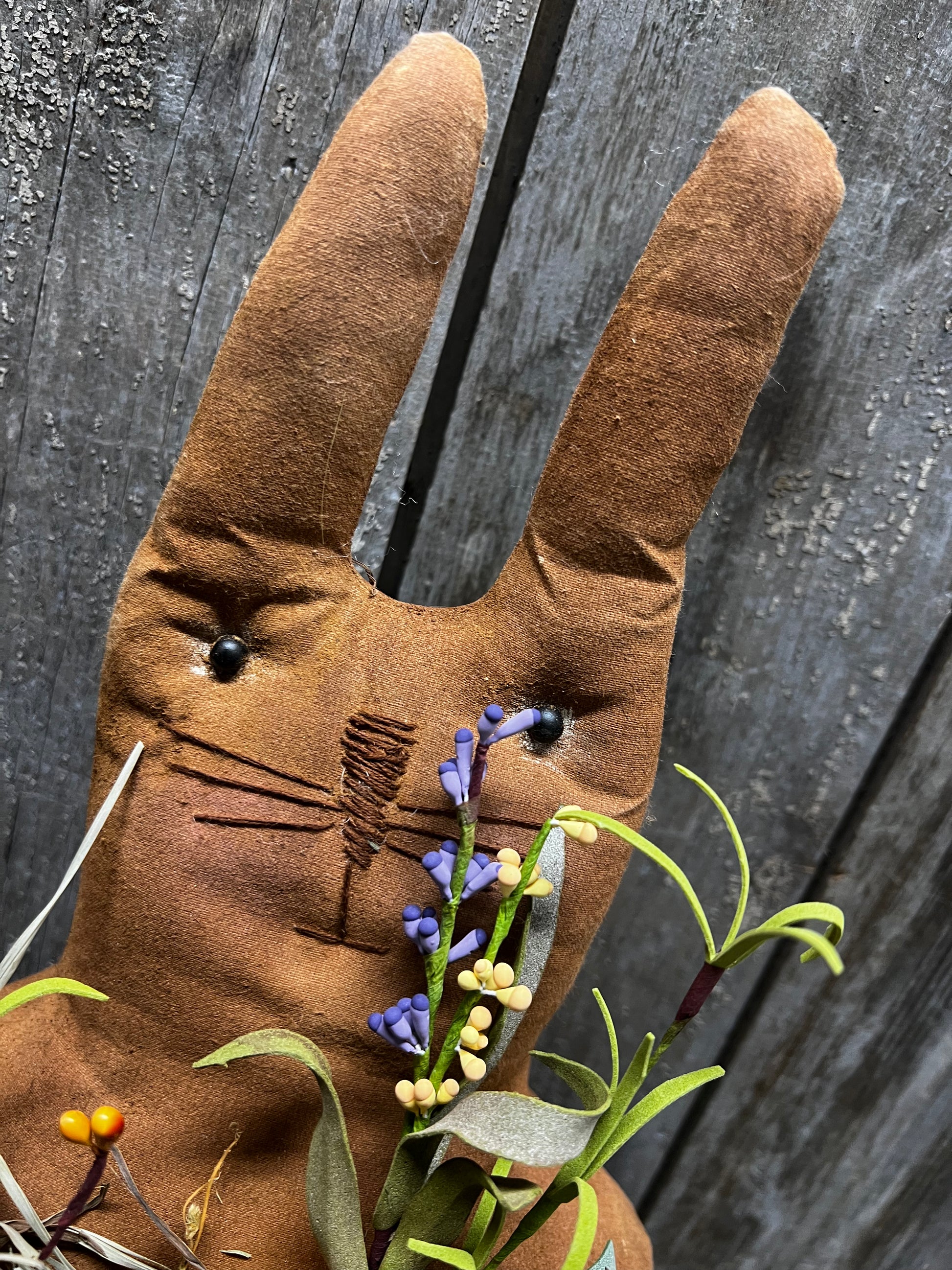 Her pouch is filled with flowers she picks along the way. "Posey" is handcrafted in PA and roughly 15" tall and 3" deep. She has a weighted bottom and will stand on her own. Please expect variations in color, size and finish. Some have stuffed ears and some have floppy ears. Flowers also may differ slightly.