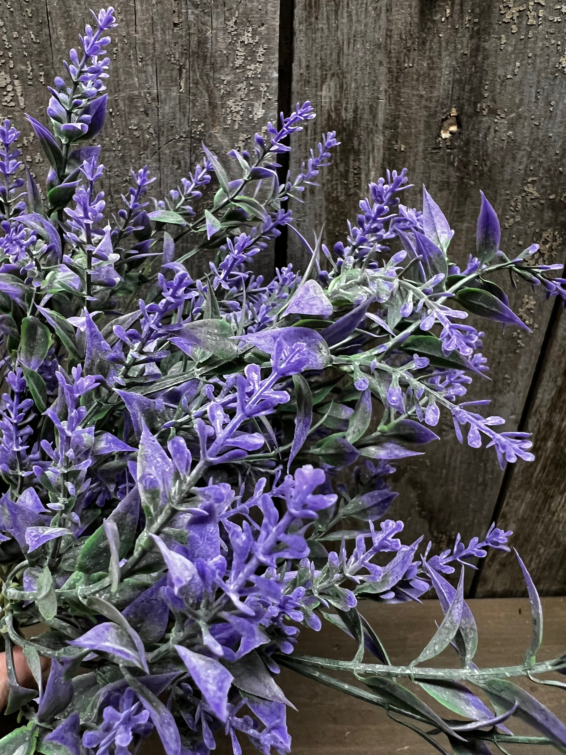Looks so real! Hints of green and pale purple make for a great filler bush or even hung to appear "drying". Plastic. Measures 14" tall. One shown.