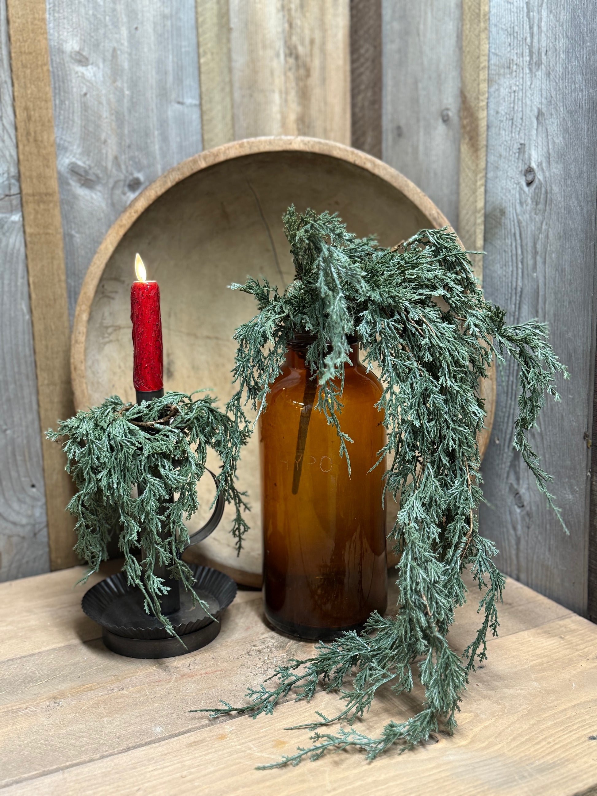 The texture...the color...the drape! Perfection! If you love a weeping, dripping, flowing accent, this makes a statement! The Dripping Garland is 17.5" and it drapes from jugs and jars or hang it as a bough with a bow. Wow! The real feel texture is amazing! Also shown with the matching Mini Candle Ring.