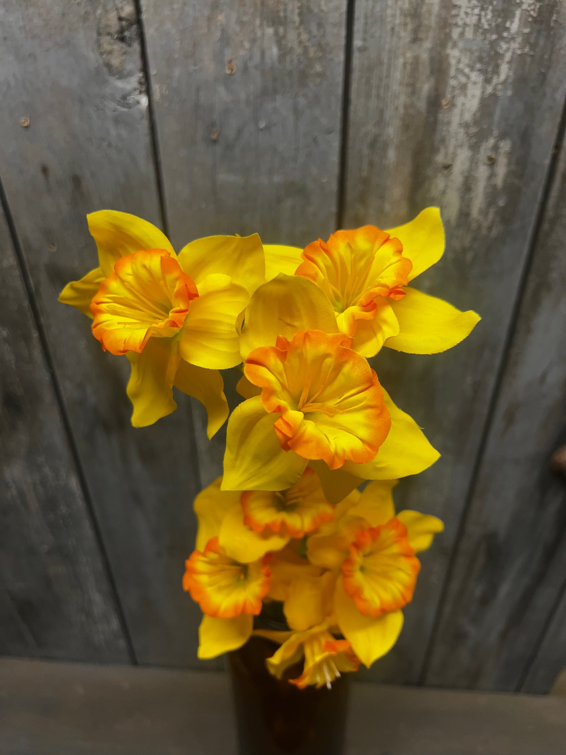 Oh so real looking! Each stem has 2 clusters of lovely daffodils on them. Measures 26" long.