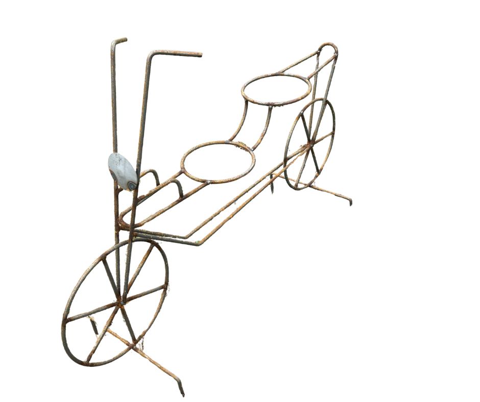 Add interest to your garden or outdoor space with our Amish crafted Motorcycle Planter. Unfinished metal...made to rust...shaped like a Bicycle with 2 planter holders. LOCAL SALES ONLY!