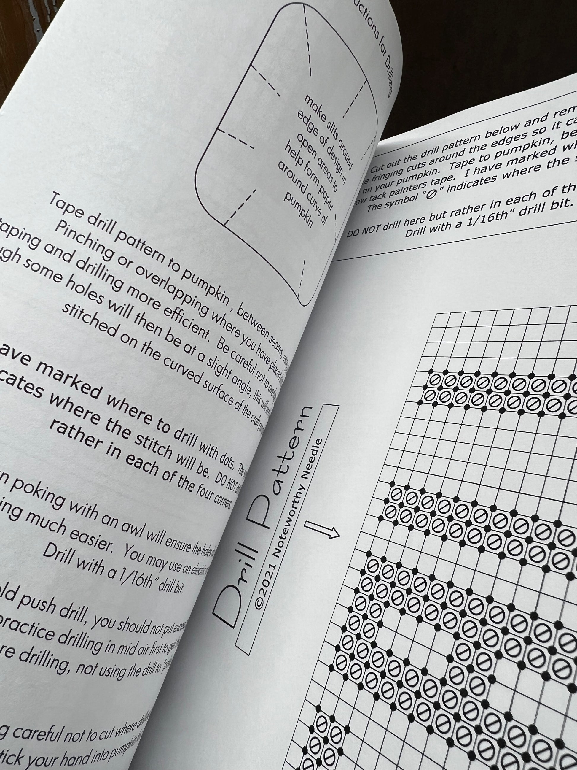 Oh, how fun! Decorate the porch or inside your home with a "Fall" Stitched Pumpkin. This book contains the drill patterns for multiple styles and designs of the word FALL. Simply print the pattern onto paper, "tape" to your carvable pumpkin, drill holes with the Carving Tool or Dremel and stitch. Step by step directions included. PATTERN BOOK ONLY!