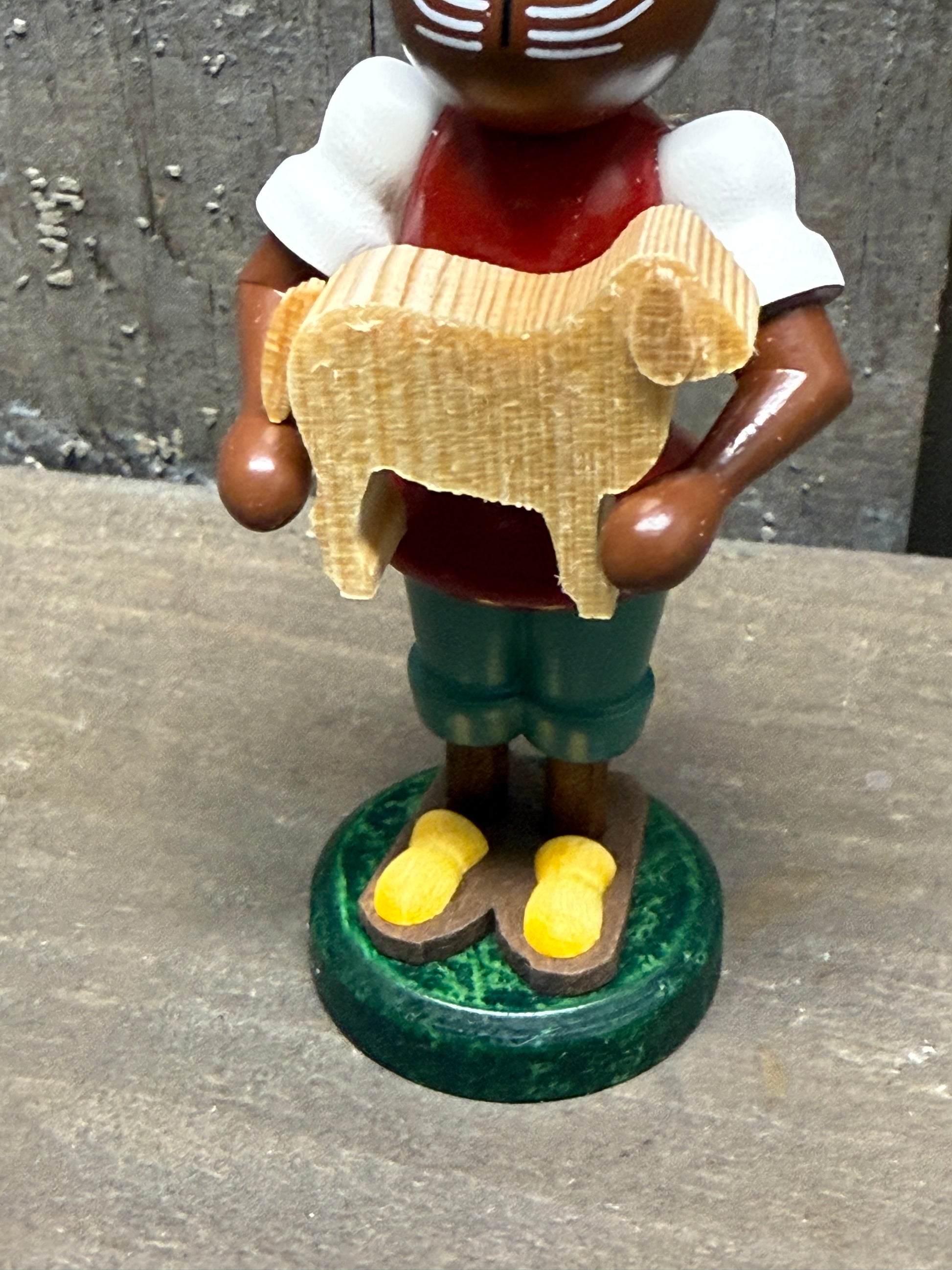 Handcrafted in Germany, the perfect addition to your collection of Folk Art or Spring decor. Features a standing bunny with a little lamb. Measures 4"x 1.5" at arms. Handcrafted in Seiffen, Germany.