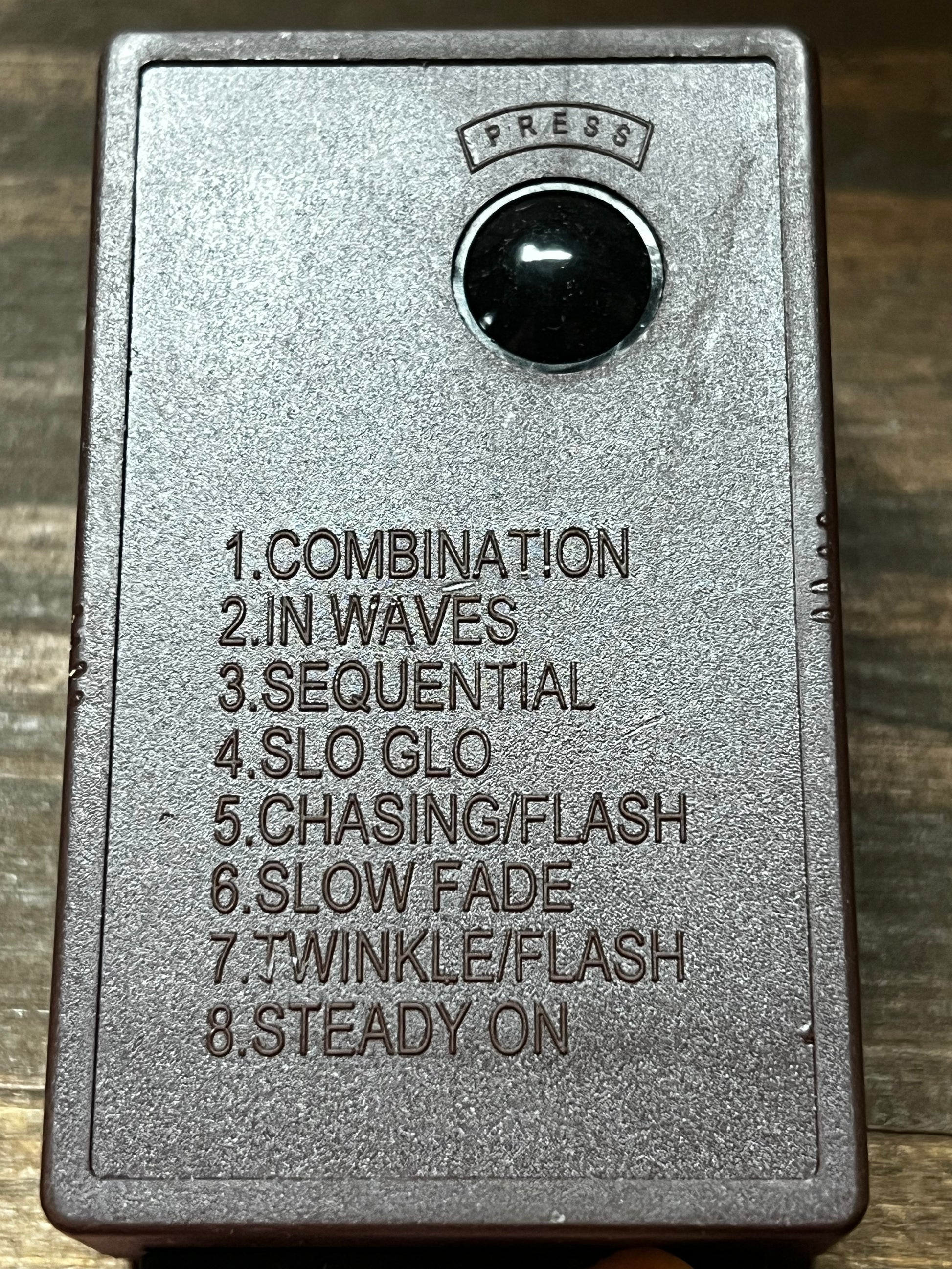 Steady Burn, Slow Fade, Flashing Glowing Lights, Three Twinkling Speeds and Dancing.