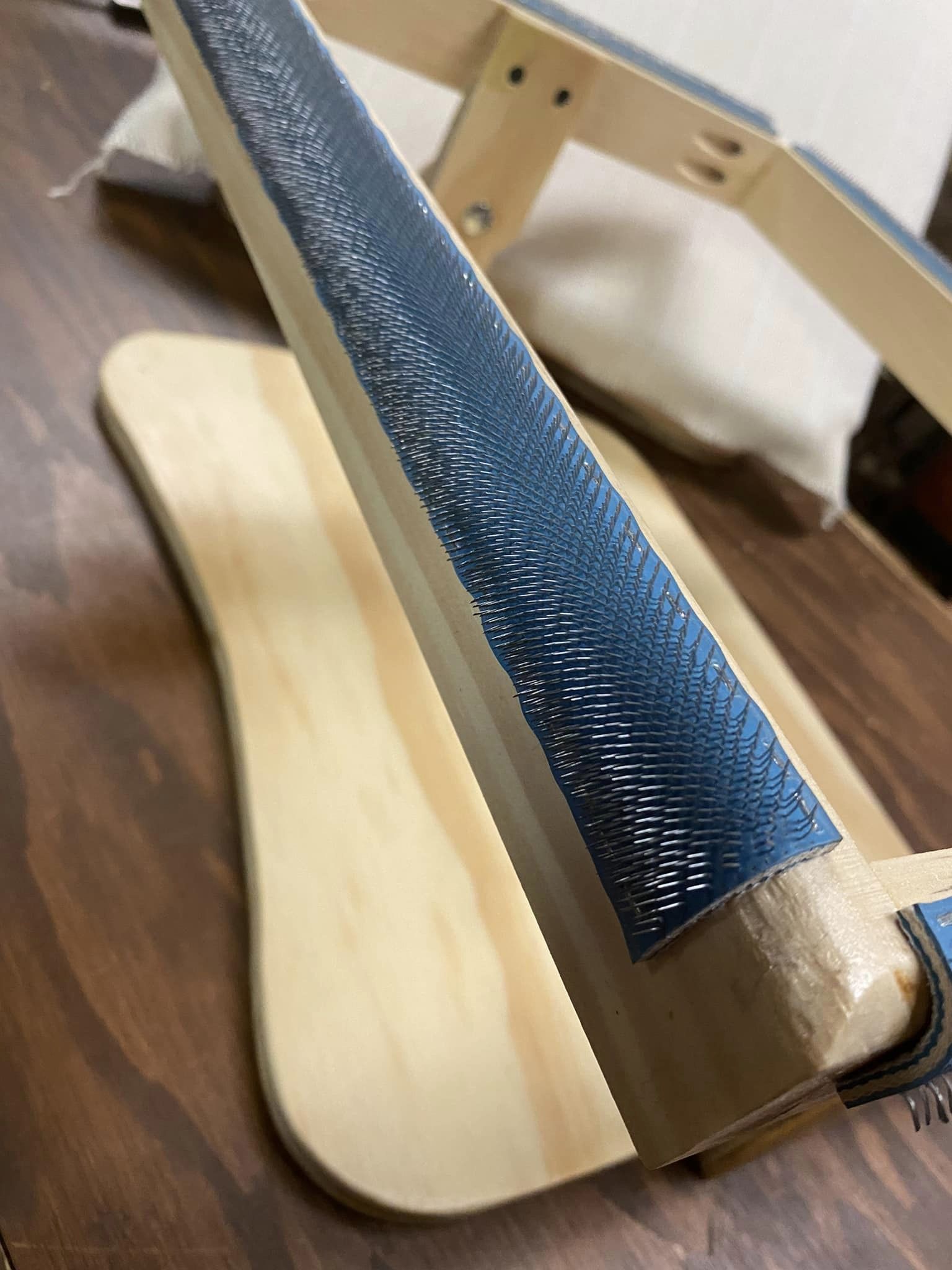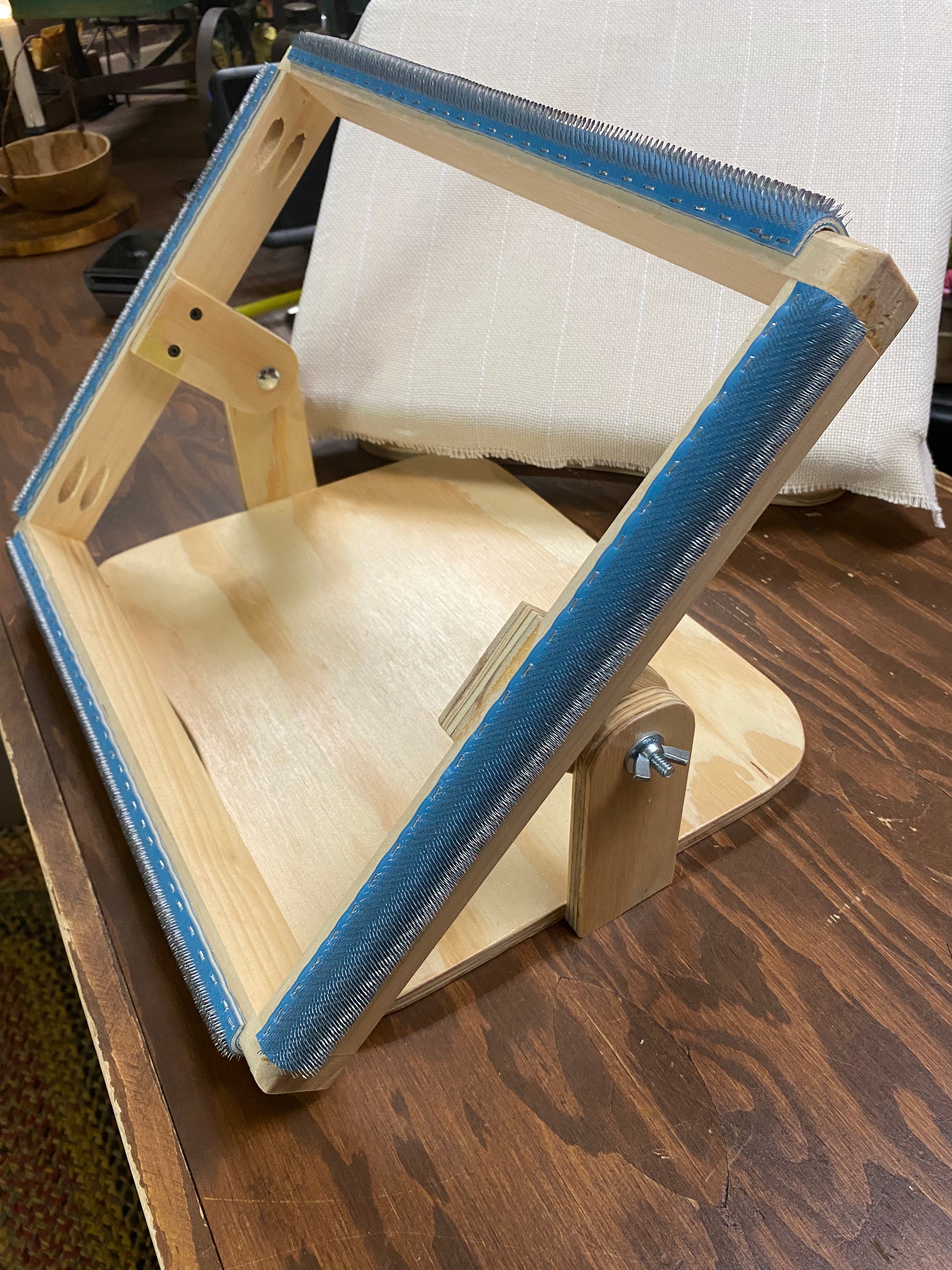 We designed our rug hooking frame with the help of Janice,The WooleyRugger, who teaches our classes. She has been "hooking" for years and has found what works best.