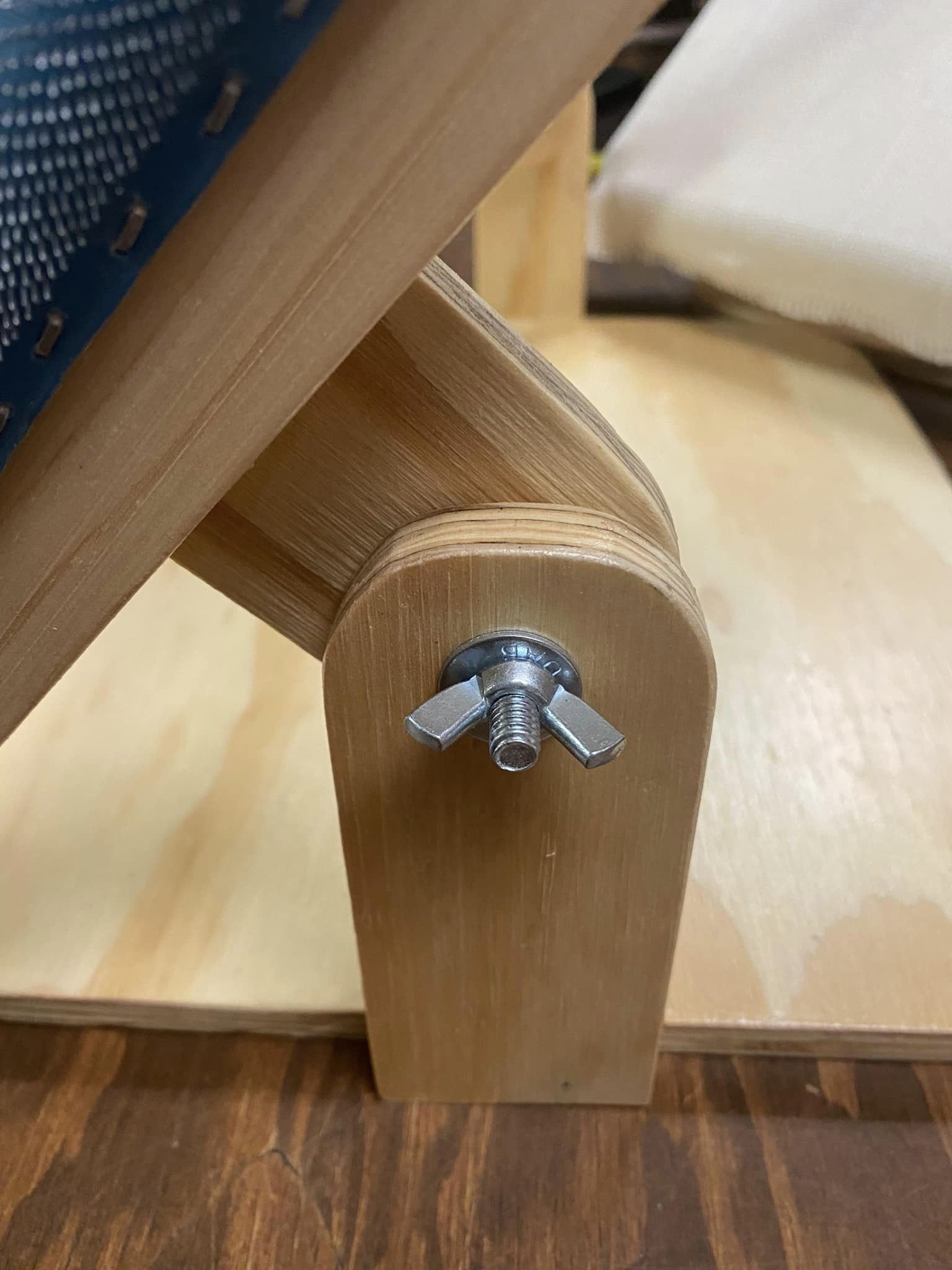 Our favorite features were combined into one light weight, very sturdy and affordable frame. We substituted wing nuts for more expensive knobs to adjust the tilt and it is easily able to be taken apart for travel. Pocket screws make the corners strong and a finish grade plywood, coated with clear matte poly finish, is used for the base.