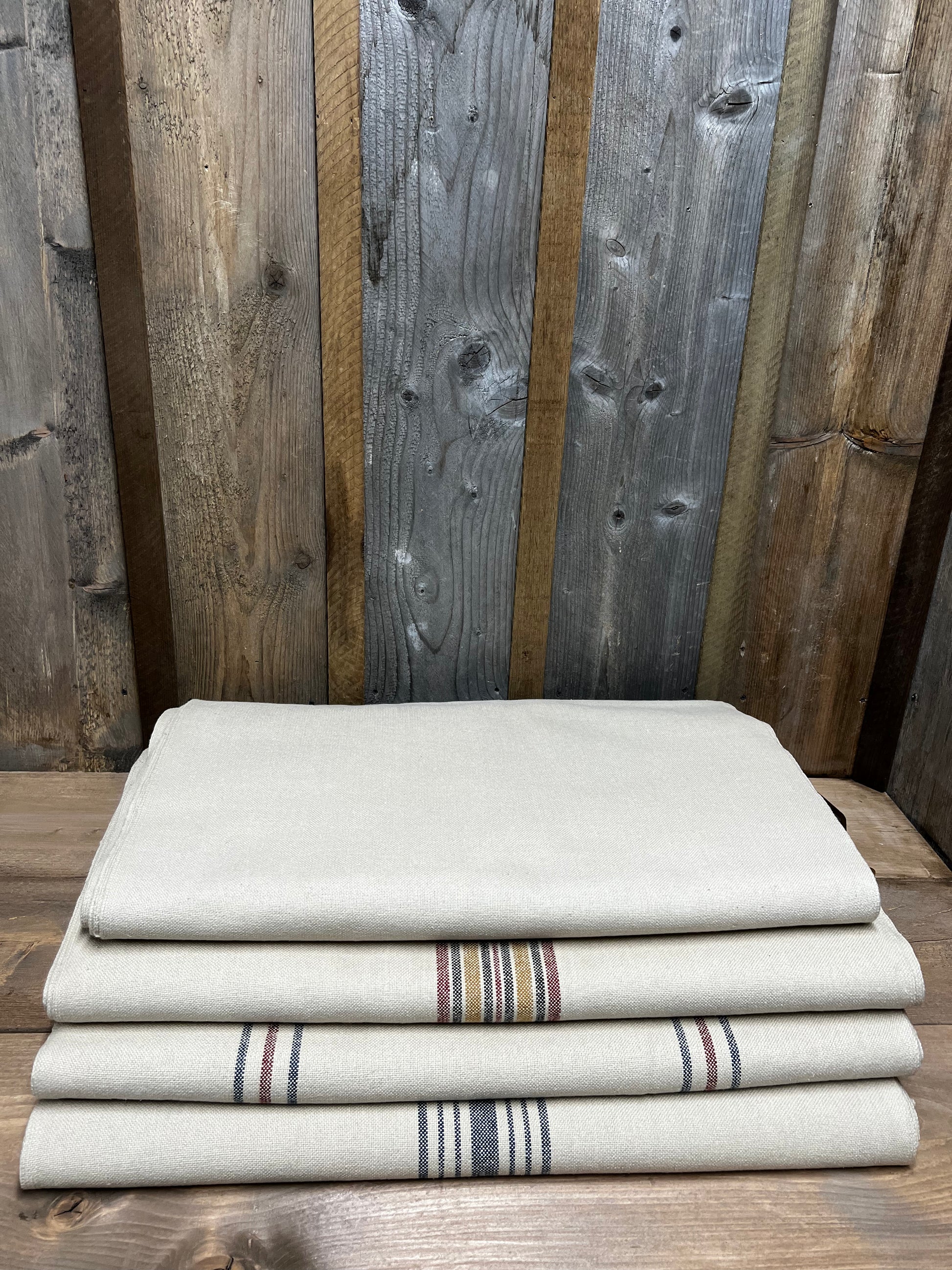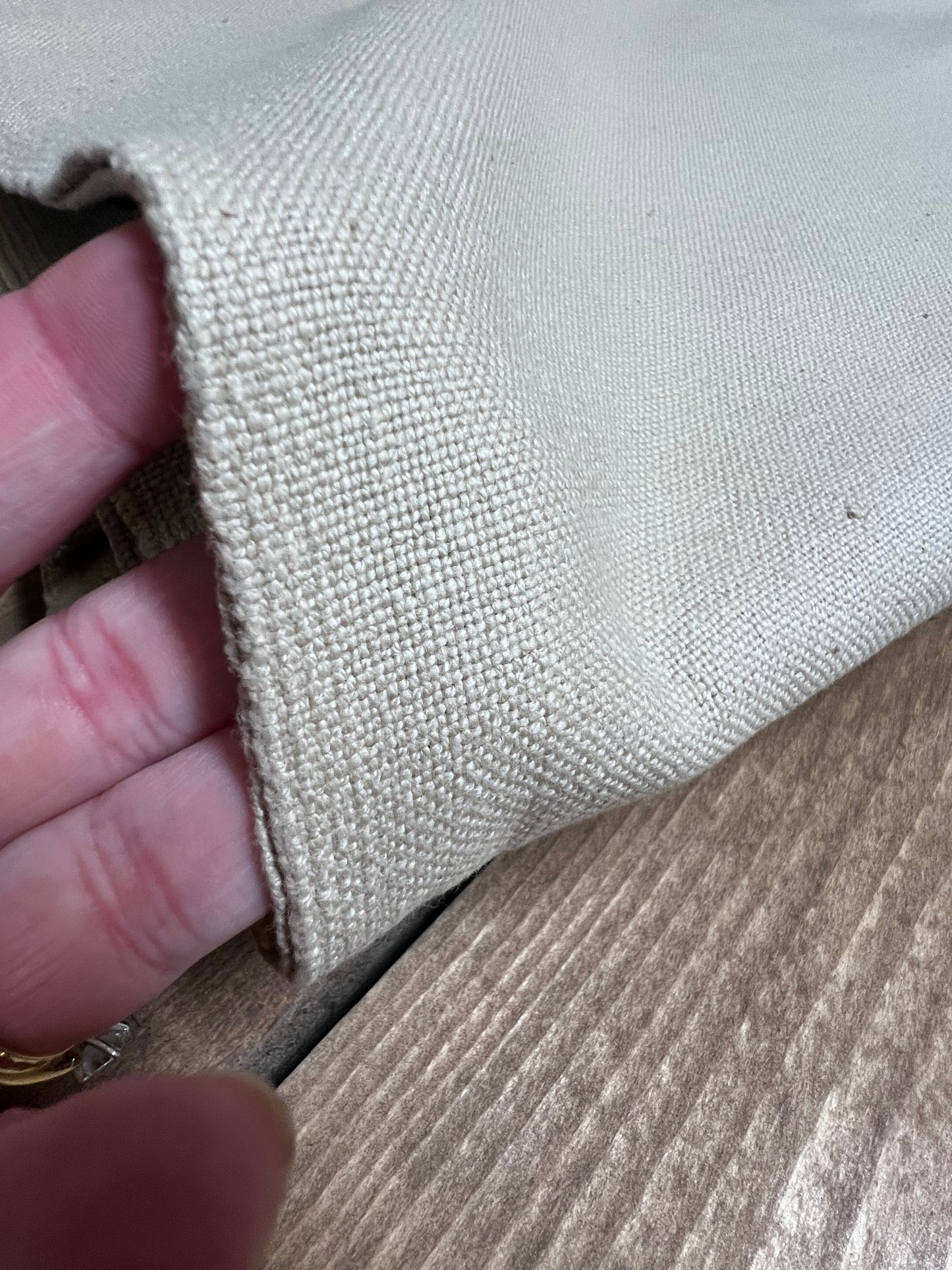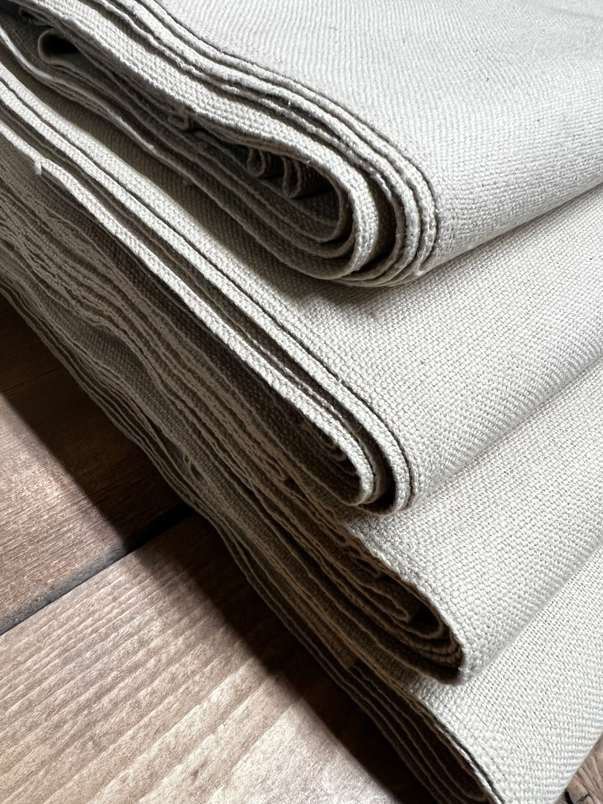The uses are endless. Make runners, valances, pillow shams, bolster pillow covers; applique wool pennies or stamp/stencil old advertising on them. Make ditty bags. I could go on and on. Each pattern measures 20" wide and I find the sold color is just a shy smaller than the others. The color is as close to natural as I can describe. Not cream, not tan but not gray either. Sold in YARD lengths only.