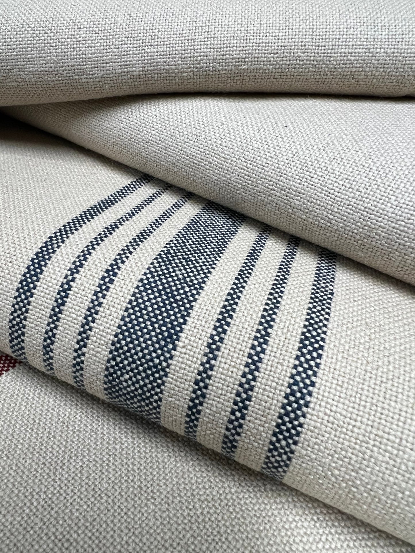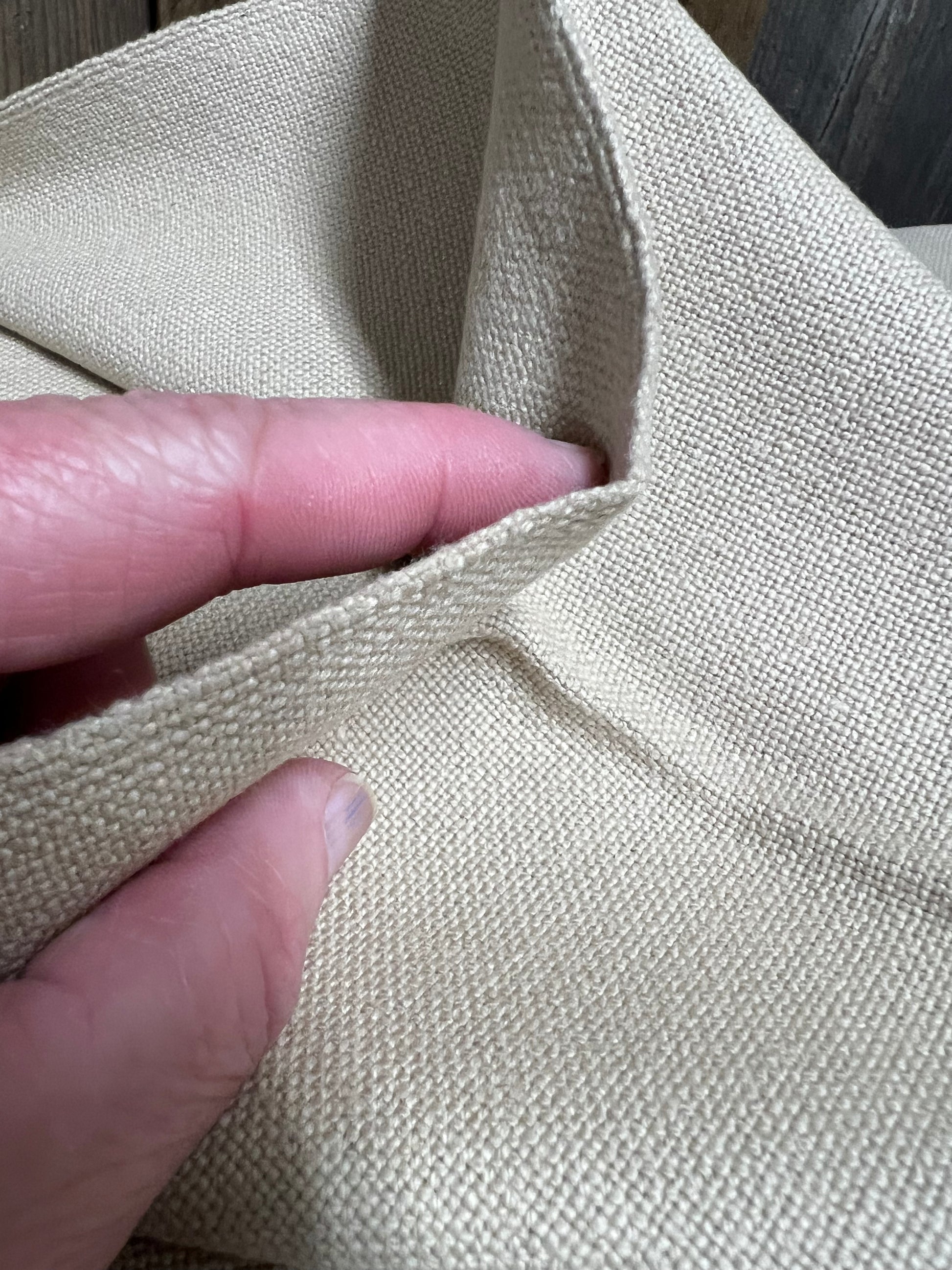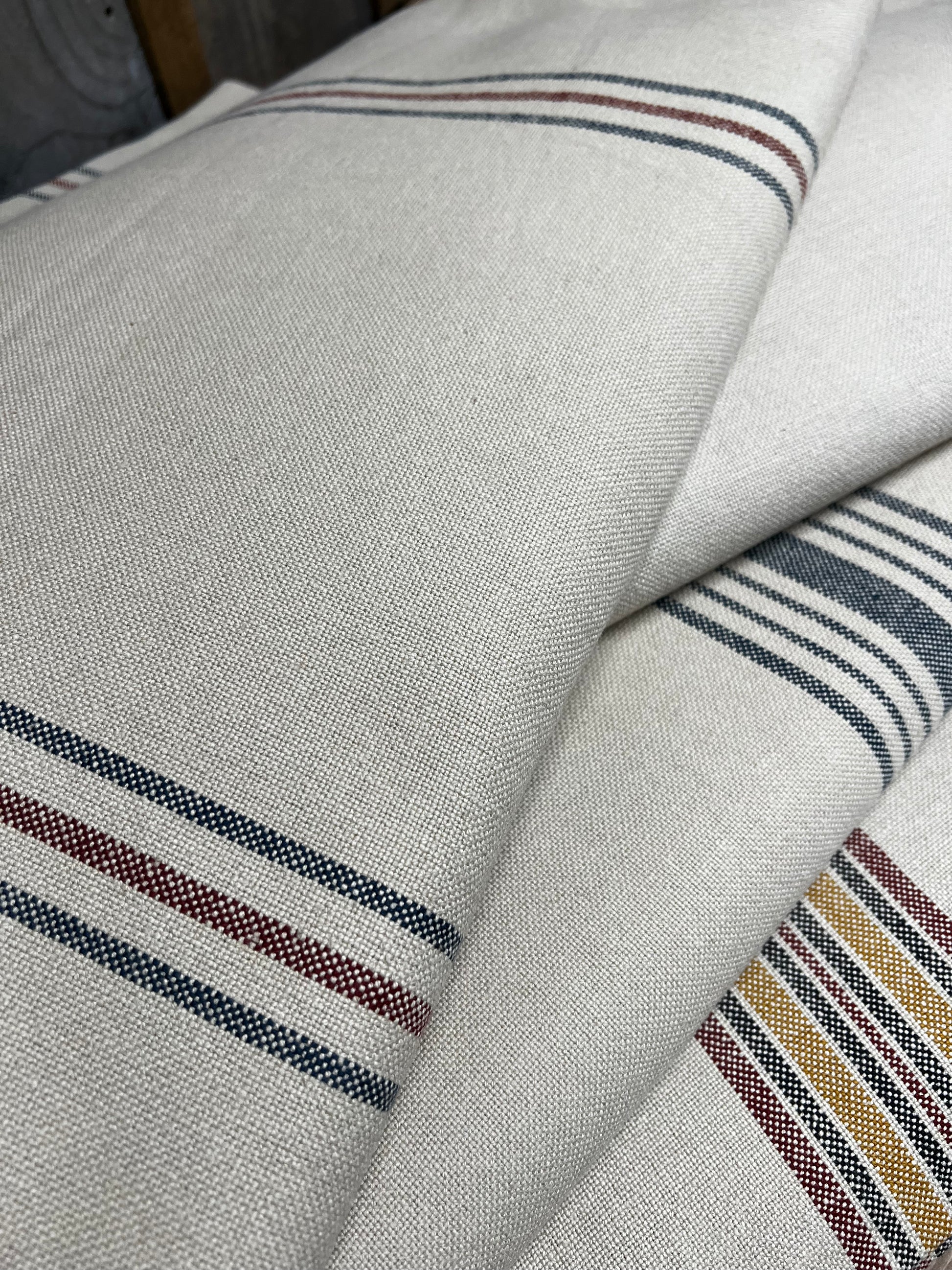 The uses are endless. Make runners, valances, pillow shams, bolster pillow covers; applique wool pennies or stamp/stencil old advertising on them. Make ditty bags. I could go on and on. Each pattern measures 20" wide and I find the sold color is just a shy smaller than the others. The color is as close to natural as I can describe. Not cream, not tan but not gray either. Sold in YARD lengths only.