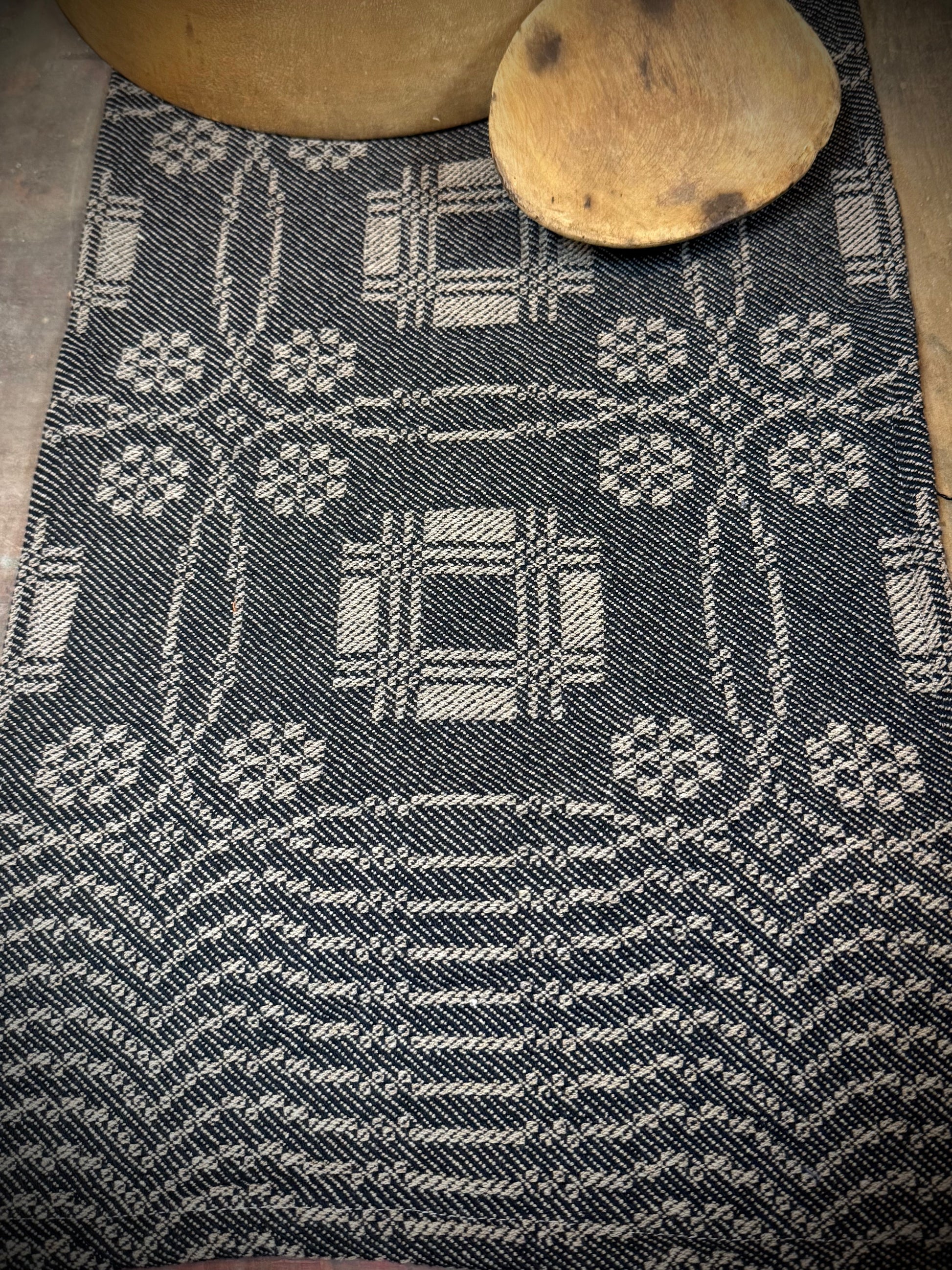 What a beautiful runner! Please note some of the pictures are of a Throw but the colors and pattern will be the same. The "made in PA" runner is new from Family Heirloom Weavers. Measures 13”x49", Cotton