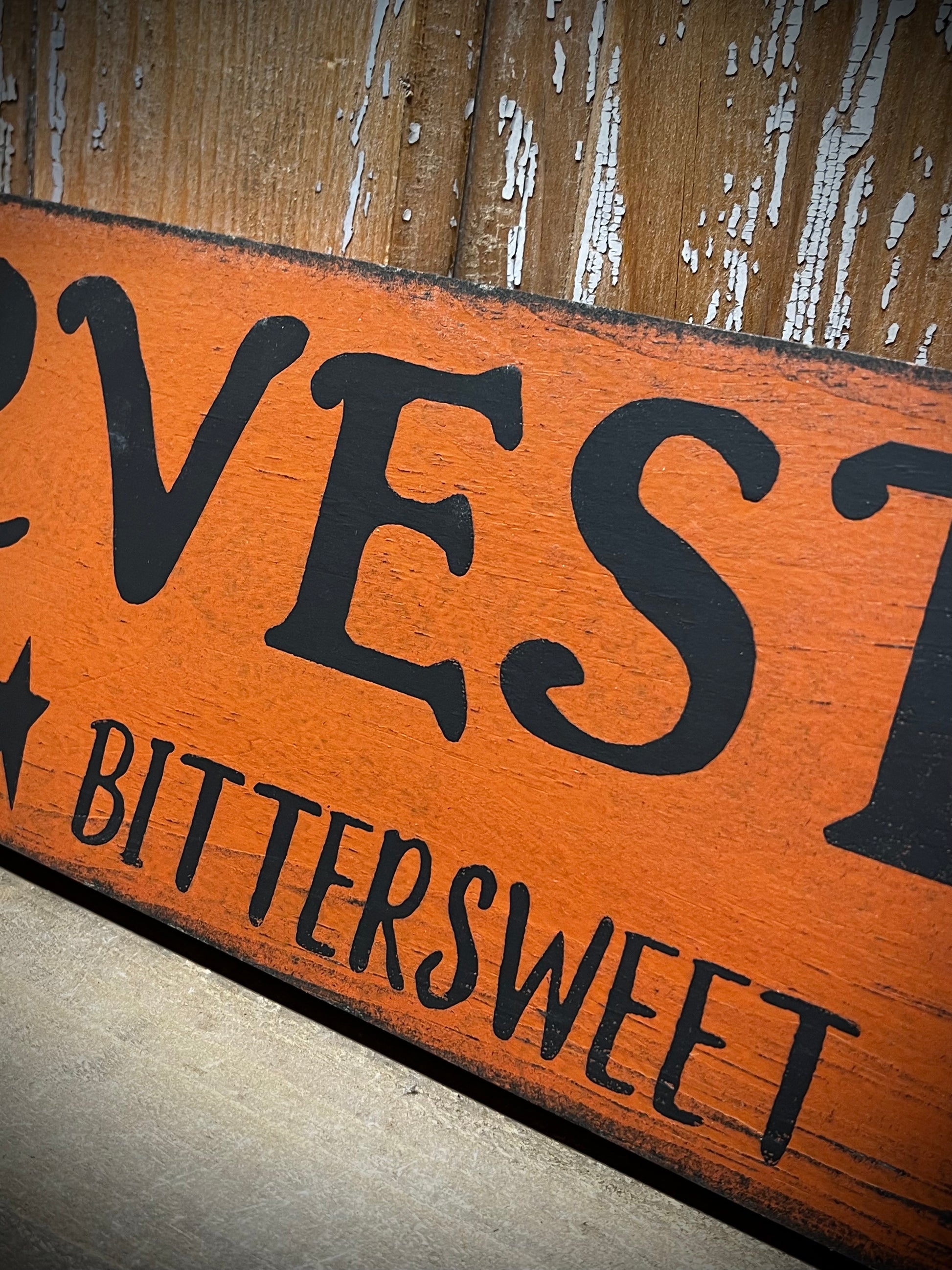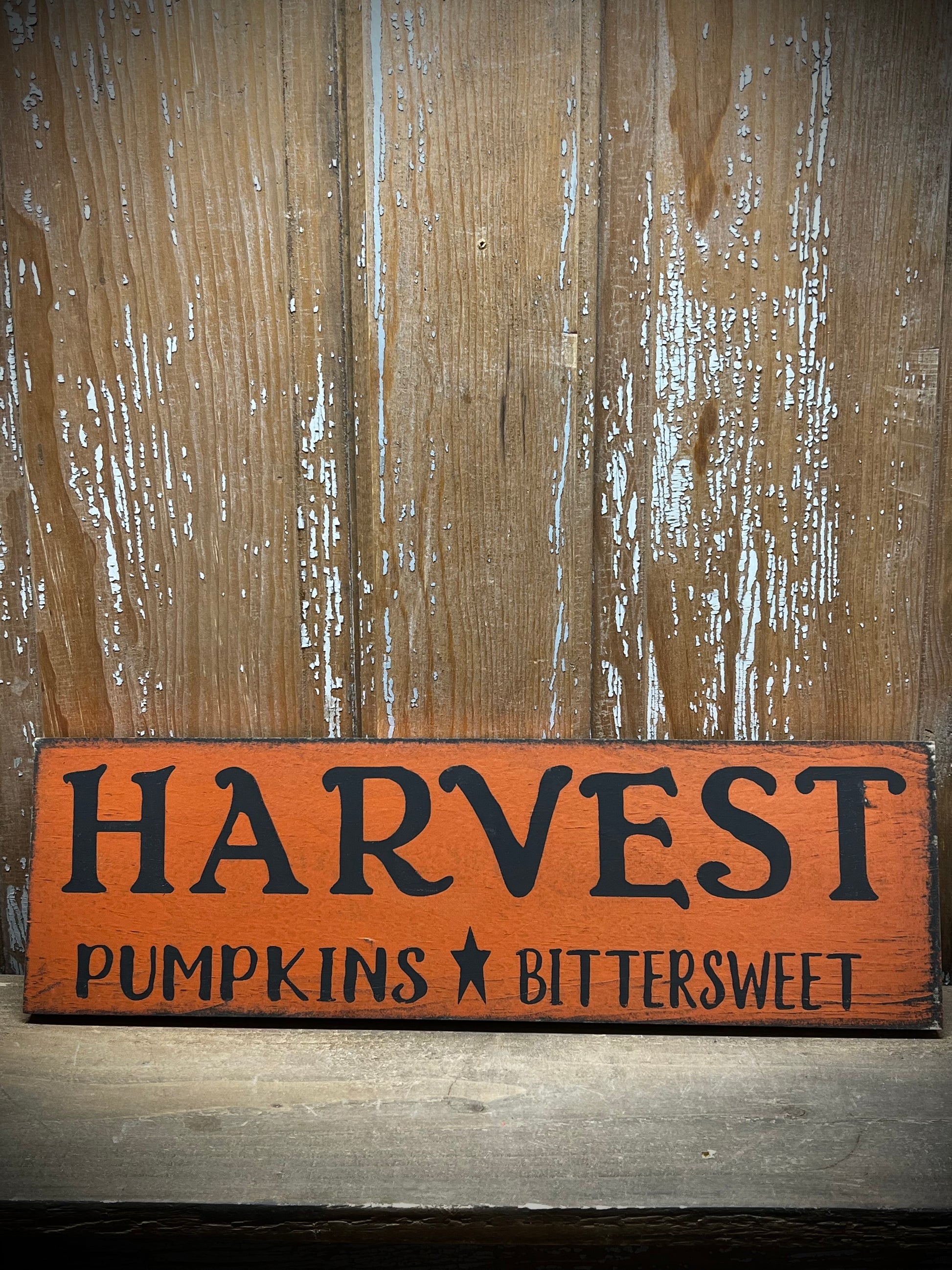 Welcome Fall with this festive sign done in rich pumpkin and black. Back has a pre drilled hole for easy hanging...or sit it on a shelf.