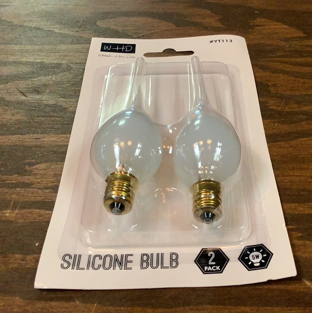 5 watt LED bulb dipped in silicone for a warm glow. 2 bulbs per pack Perfect for electric lamps and candles.
