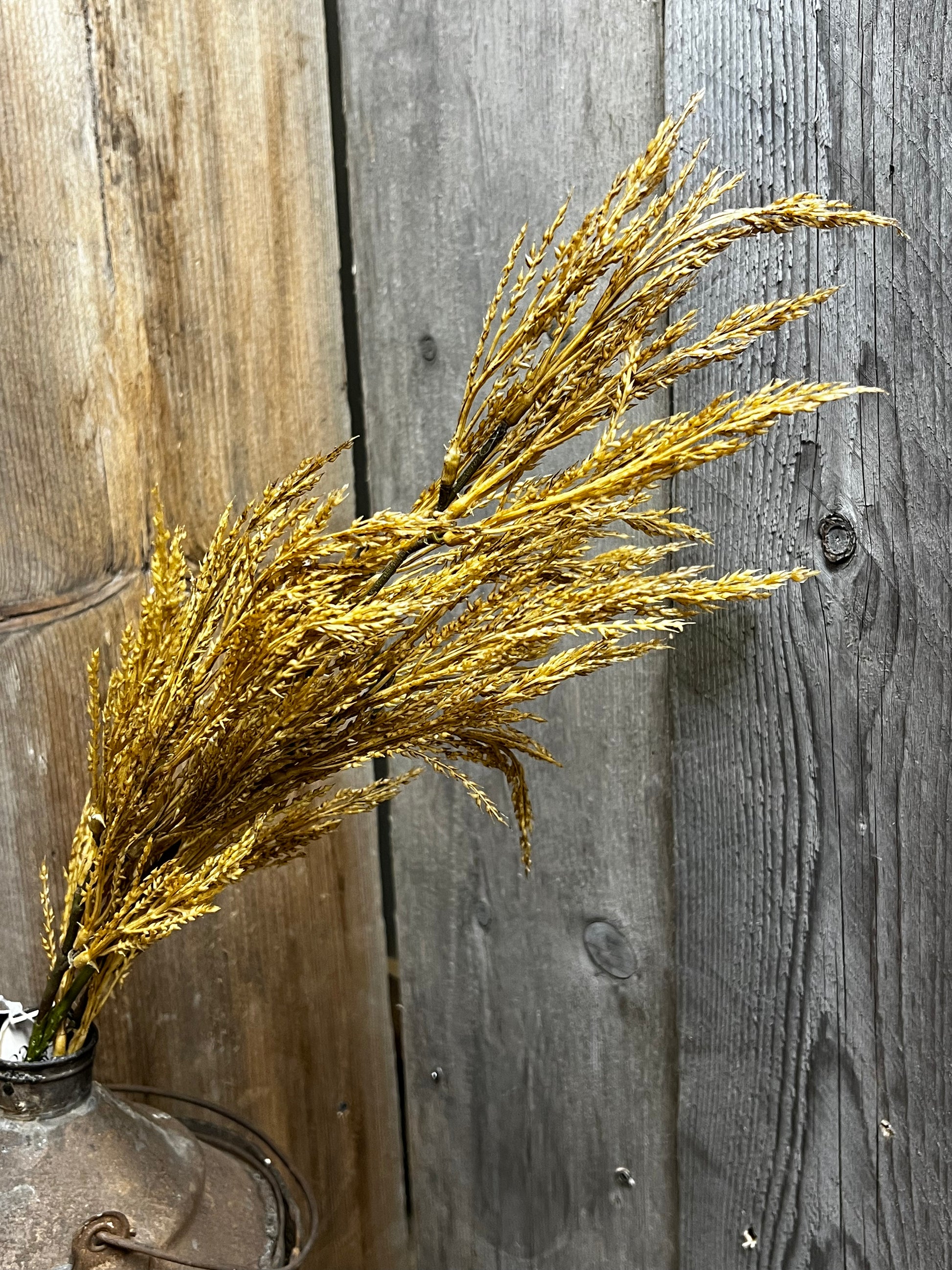 The look of gorgeous dried wheat without the mess. Our version is made of plastic but looks so very real! Perfect for fillers or on its own...it will become a seasonal favorite! Measures 28" tall.