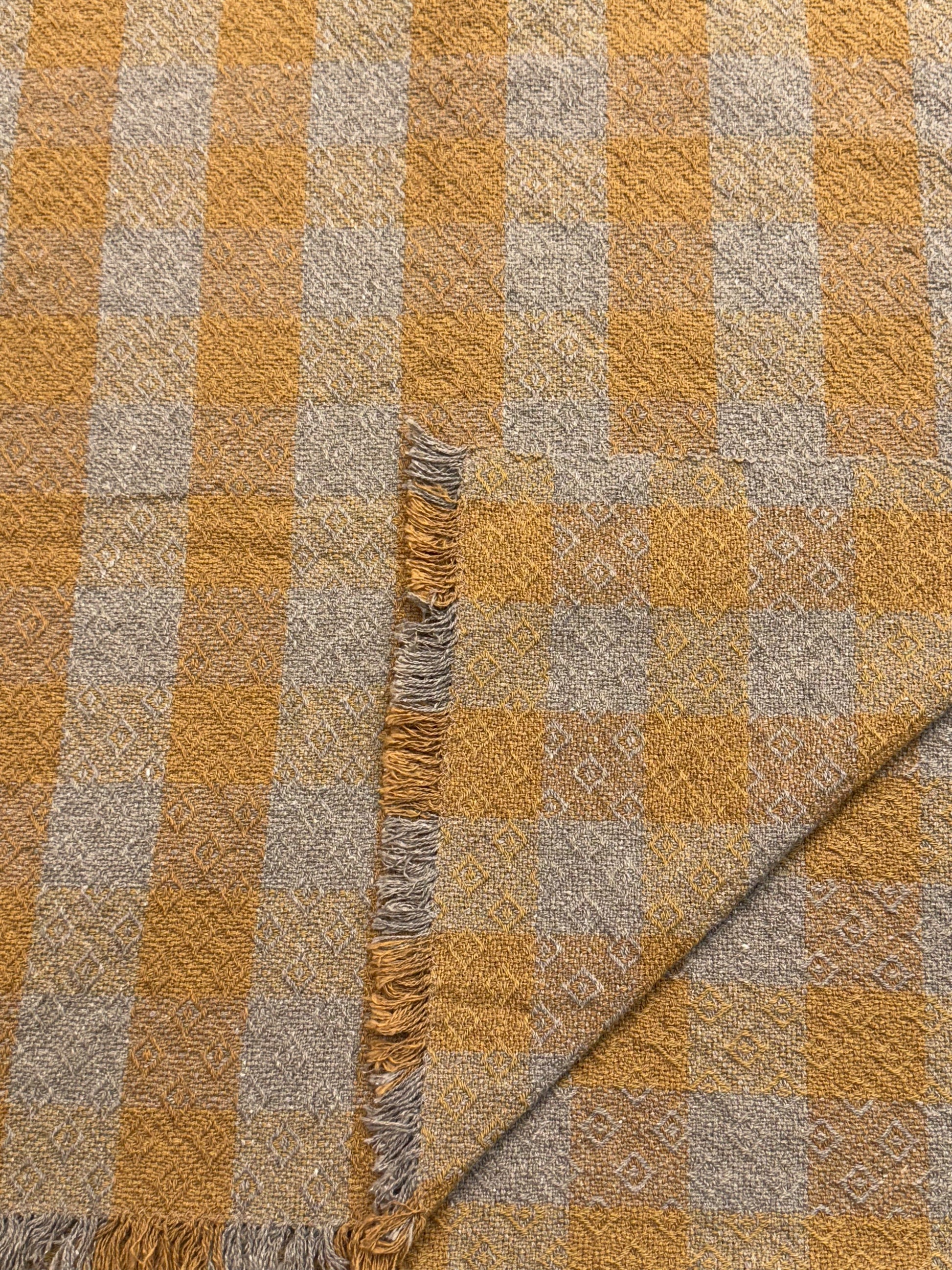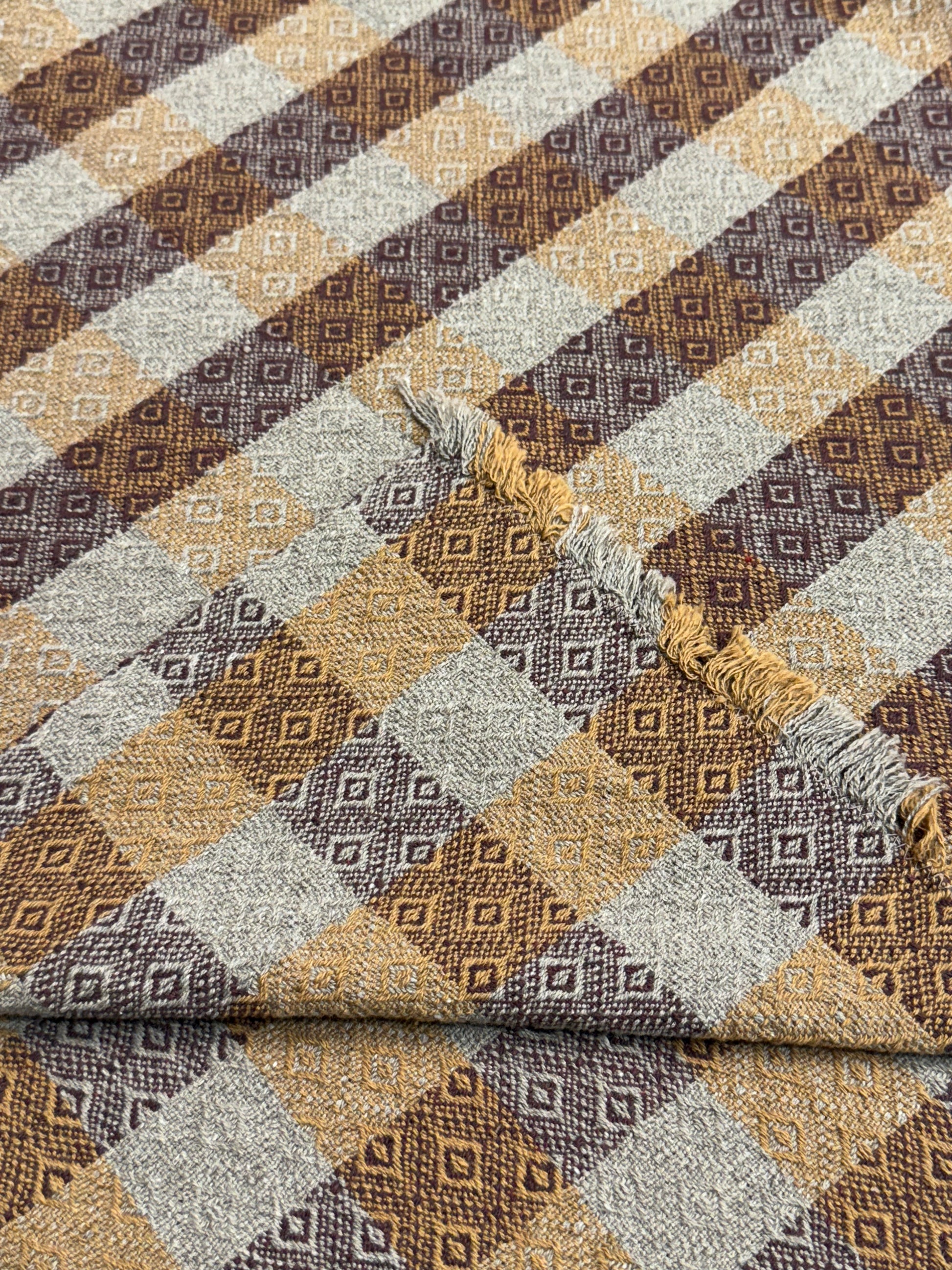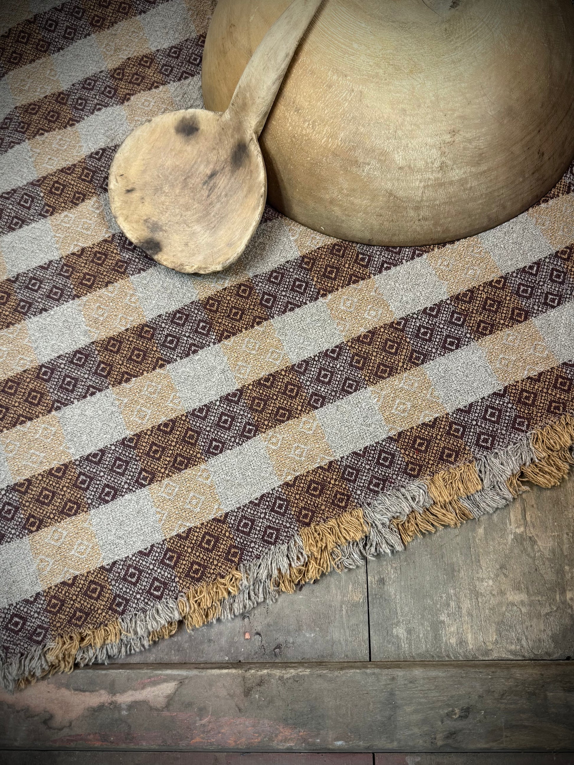 When you need a pattern to brighten a room and catch the eye, this is it. The colors are unique and are perfect for decorating your primitive home. The "made in PA" square is new from Family Heirloom Weavers in the reproduction Diamond Square pattern. This pattern does have a fringe. Measures 50” x 50”, Cotton
