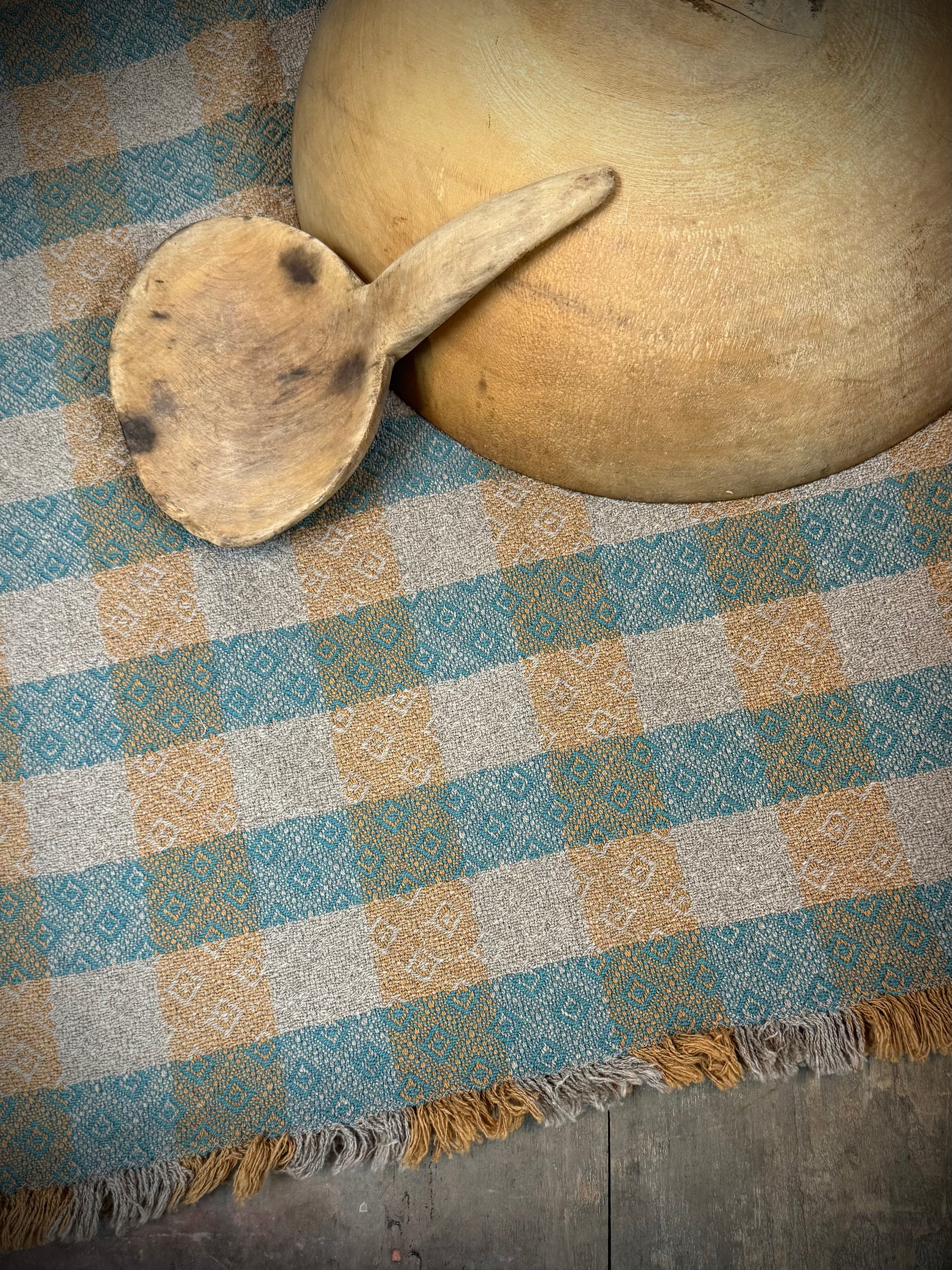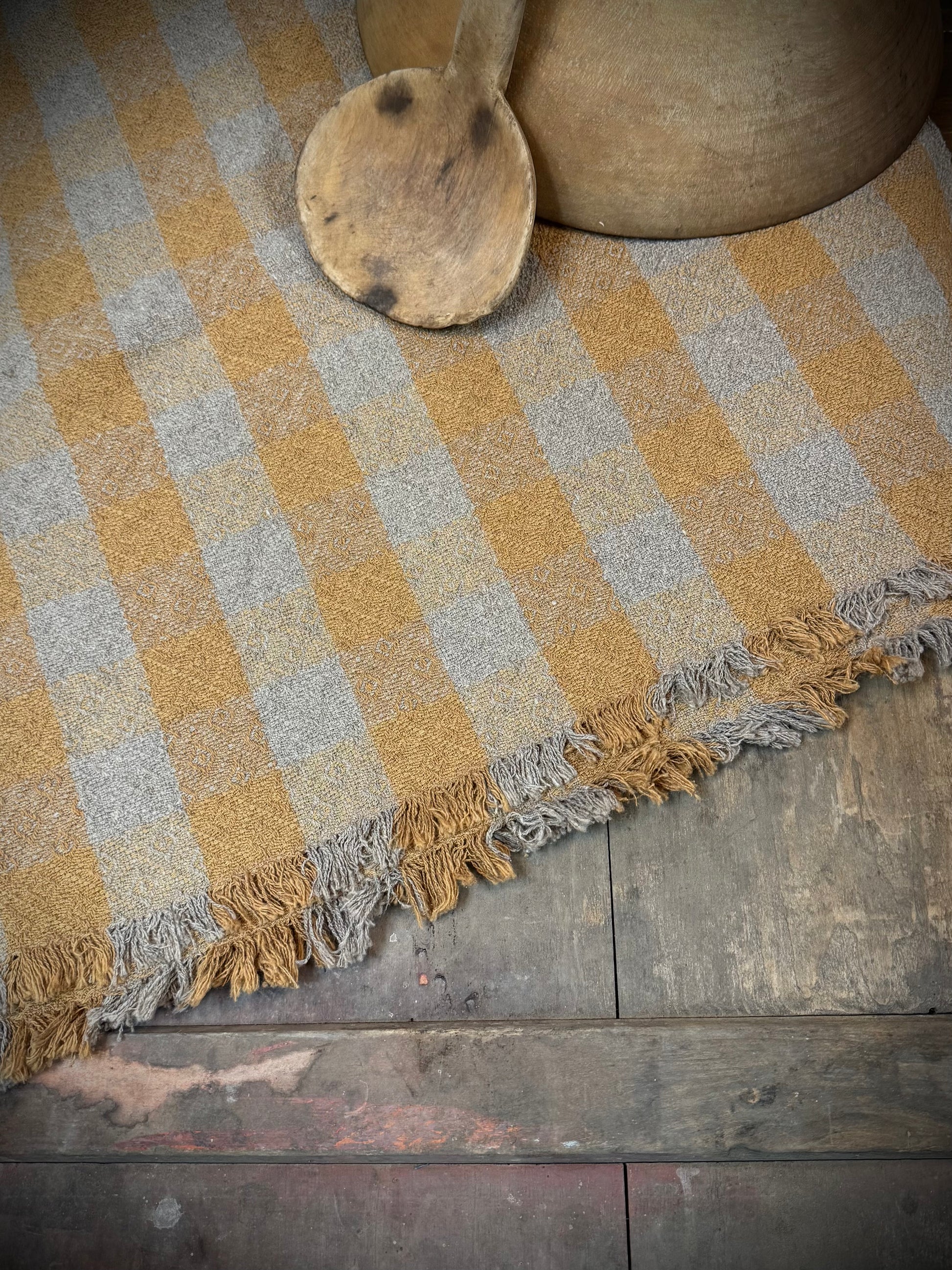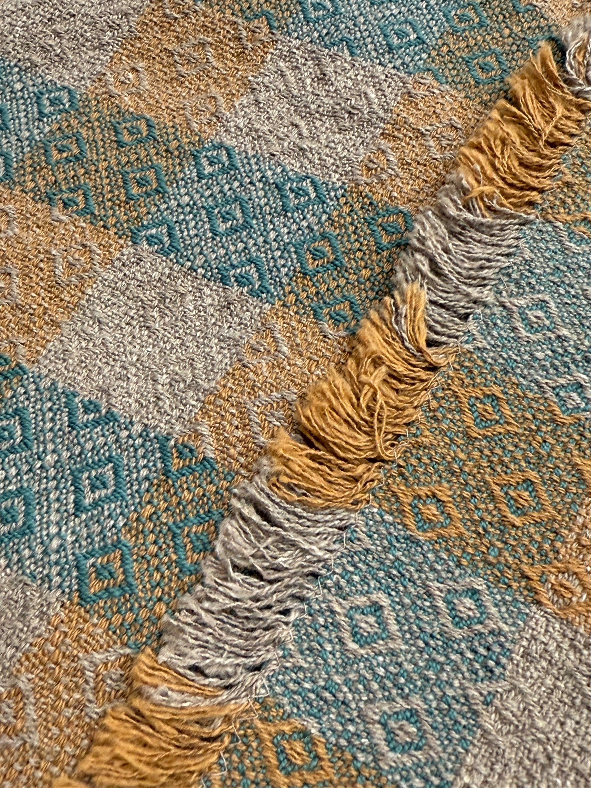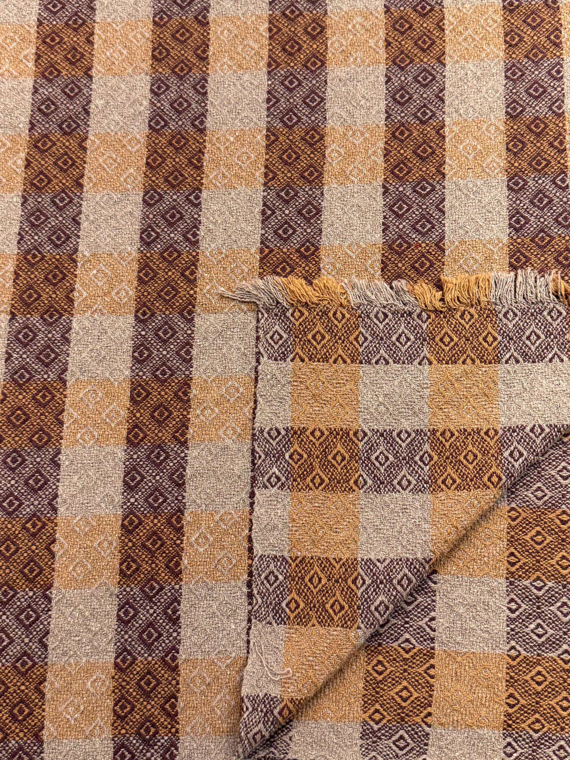 When you need a pattern to brighten a room and catch the eye, this is it. The colors are unique and are perfect for decorating your primitive home. The "made in PA" square is new from Family Heirloom Weavers in the reproduction Diamond Square pattern. This pattern does have a fringe. Measures 50” x 50”, Cotton