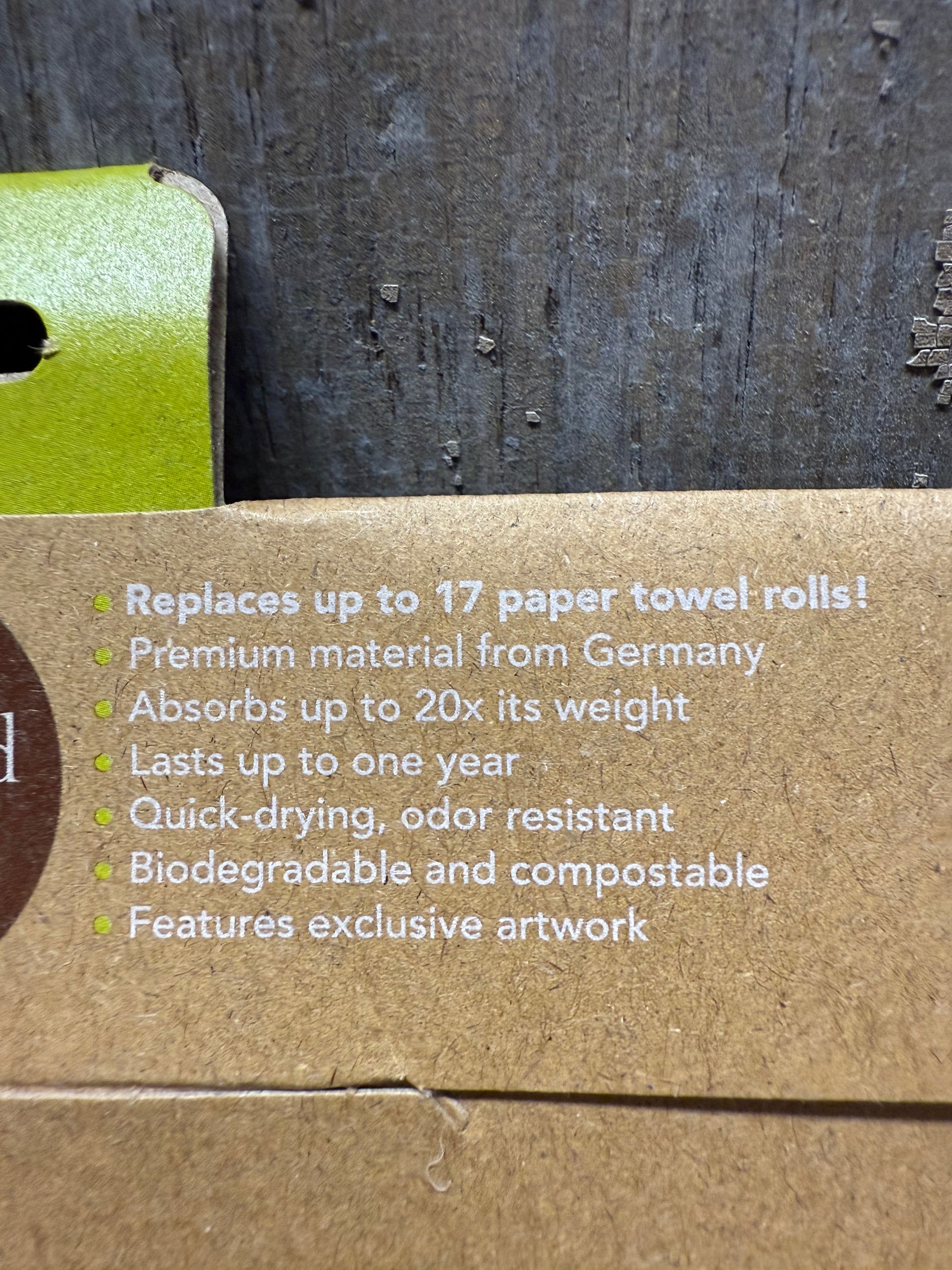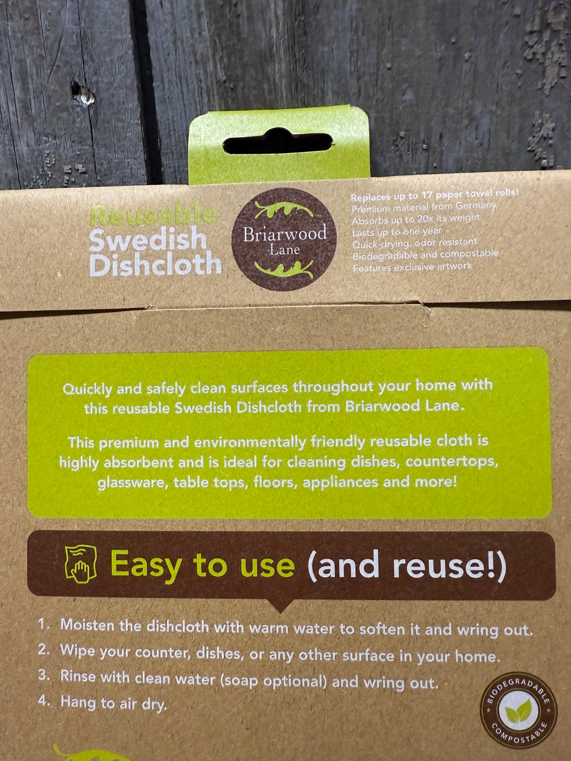 Reusable never looked so good! One 8"x 7" Swedish Dish Cloth replaces up to 17 rolls of Paper Towels! Quickly and safely clean surfaces with this premium, environmentally friendly reusable cloth that can absorb up to 20X its weight!