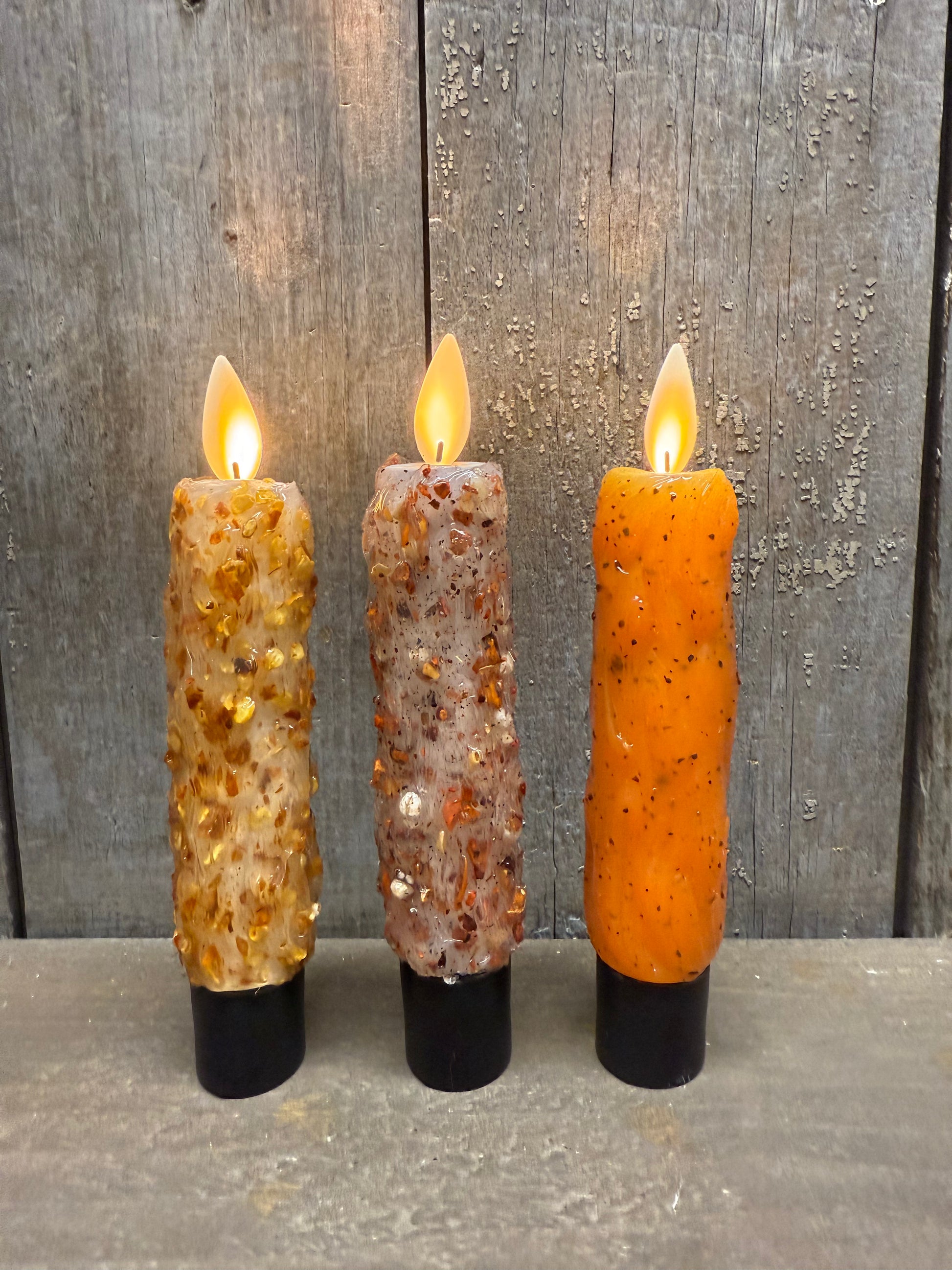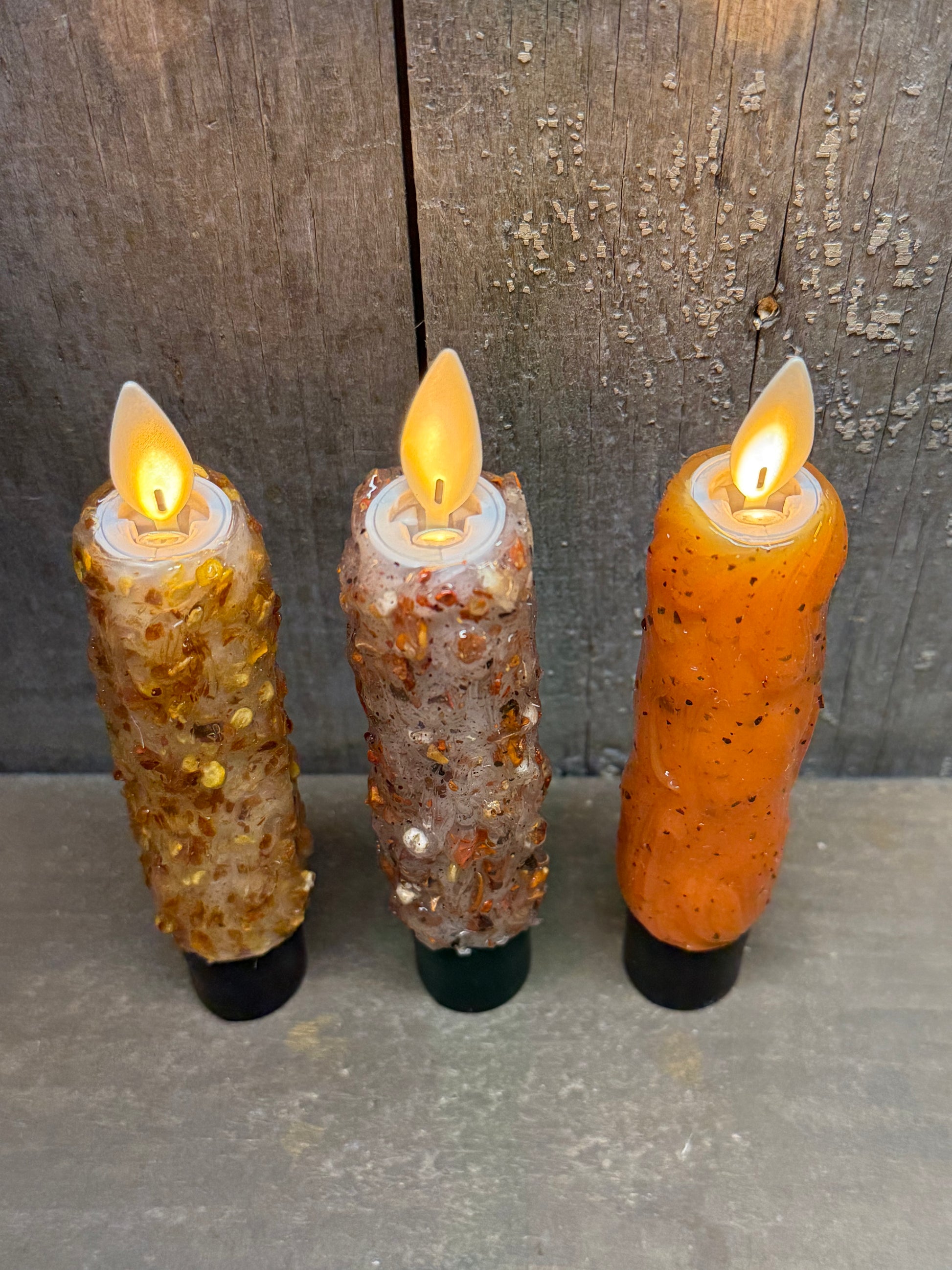 Please read description carefully! This moving flame candle is 5.5" tall and takes 1 AA battery (not included) and NEEDS A REMOTE, SOLD SEPARATELY. They are silicone dipped (no wax to chip off) with some added textured for a lovely primitive look. The Remote is how you turn ON and OFF the candle; you cannot operate the candle without the remote. There is both a 6 hour and 8 hour TIMER option. ONE REMOTE WILL WORK WITH MULTIPLE CANDLES. Please note the base of the candle measures 7/8" and is "squared off." It works best on "non tapered" candle holders. *****Duracell VS. Energizer Batteries. We have found that some of the Duracell Batteries are a bit smaller in length and will not allow the spring inside the candle to not make contact with the battery and the candle will not work. Before contacting us about a defective candle make sure you try a different brand of battery and also check the battery in the remote. This is not a slight on Duracell as to battery run time; simply the length of the battery itself*****
