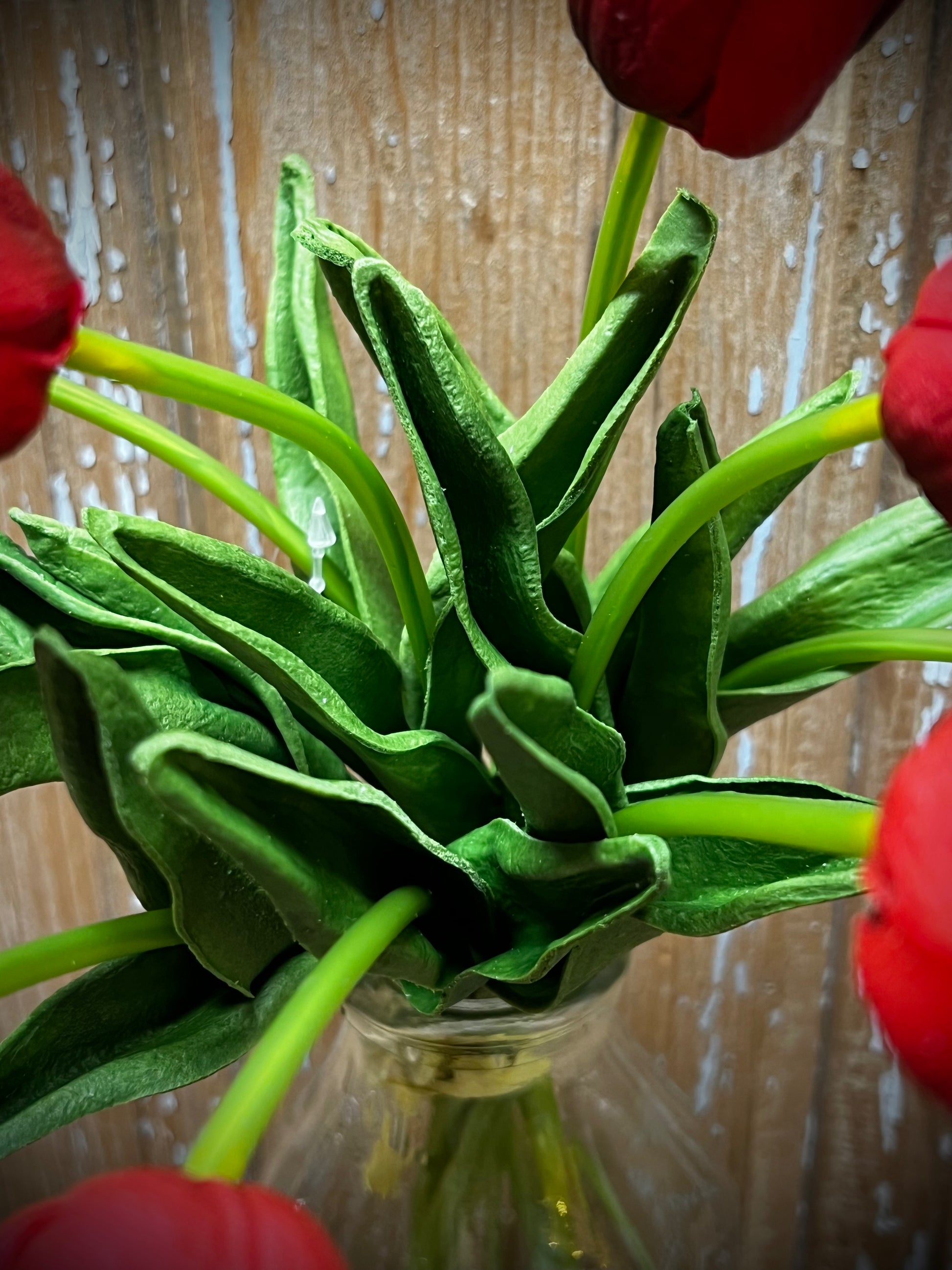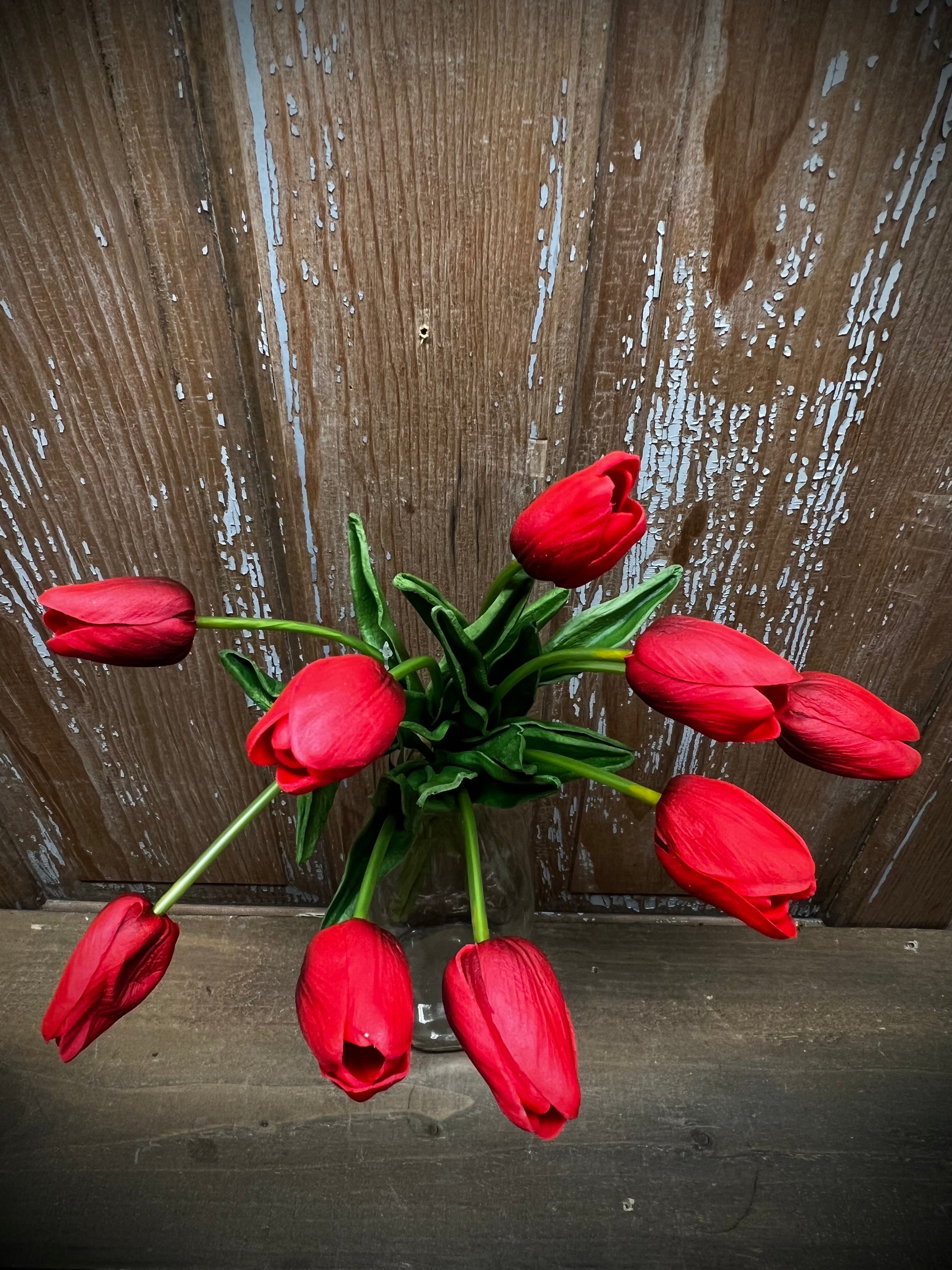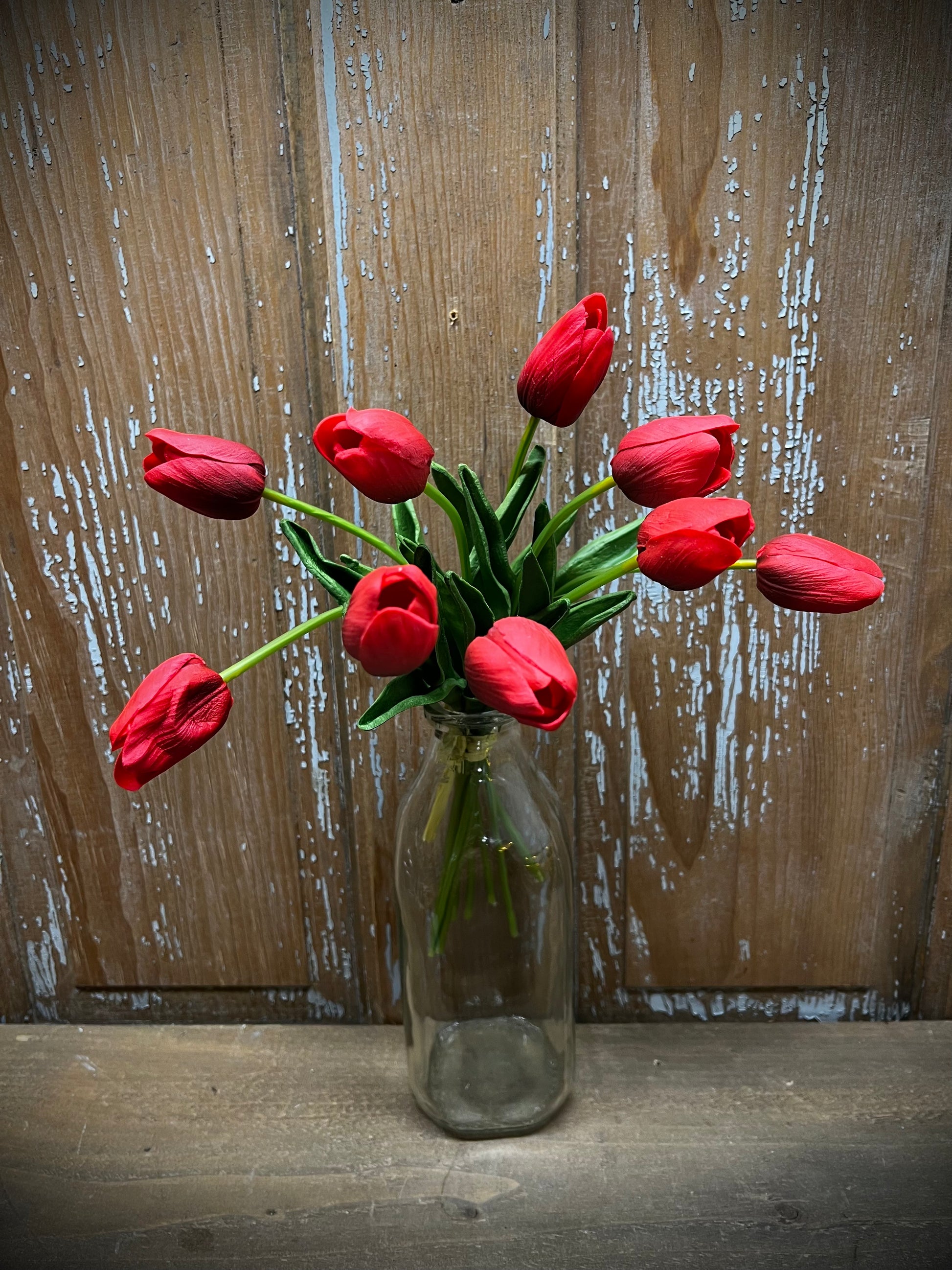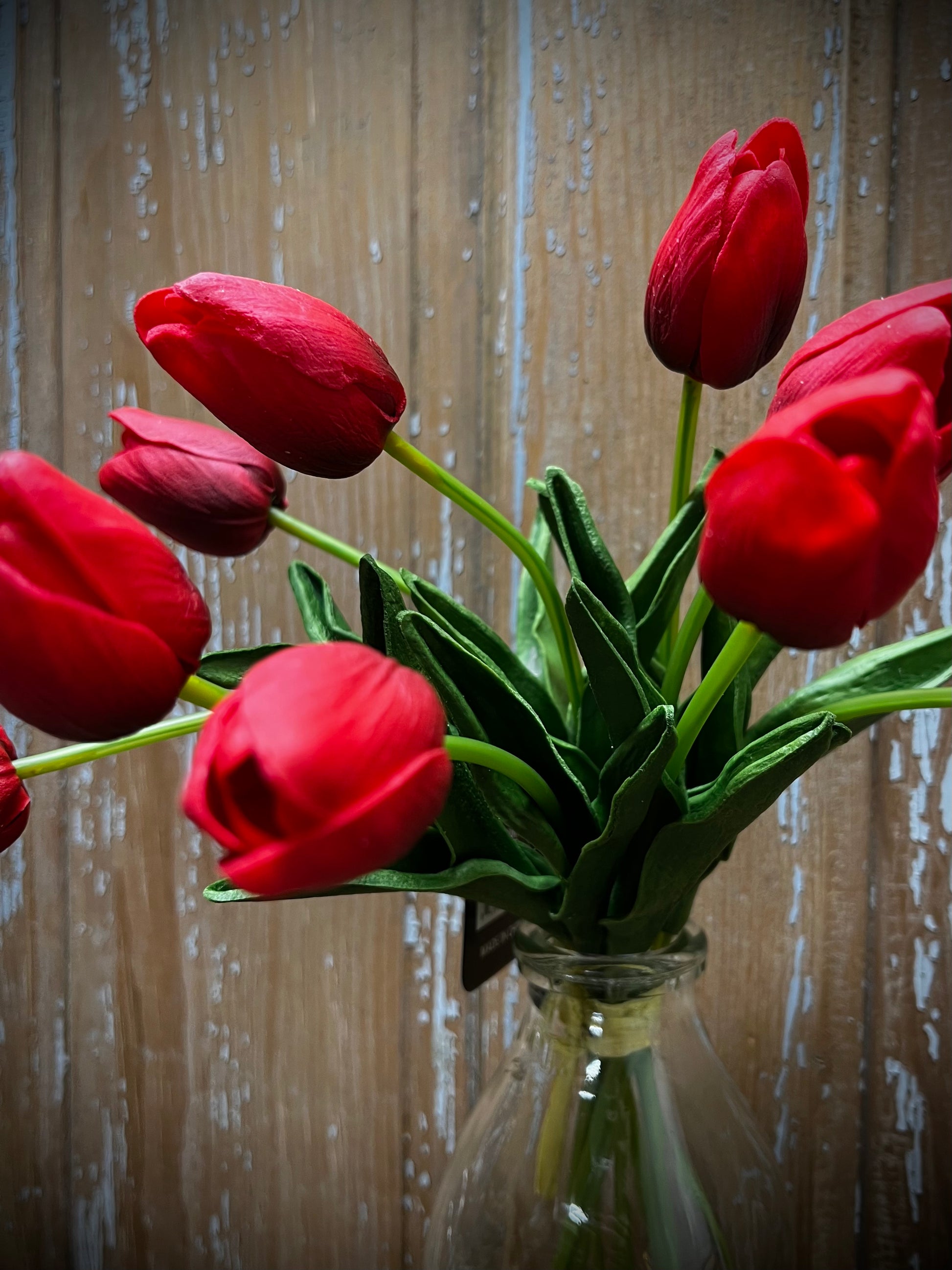 Nothing brighten a corner or porch like the pop of color from red tulips. you will receive 9 stems, 13” long with a realistic foam feel.