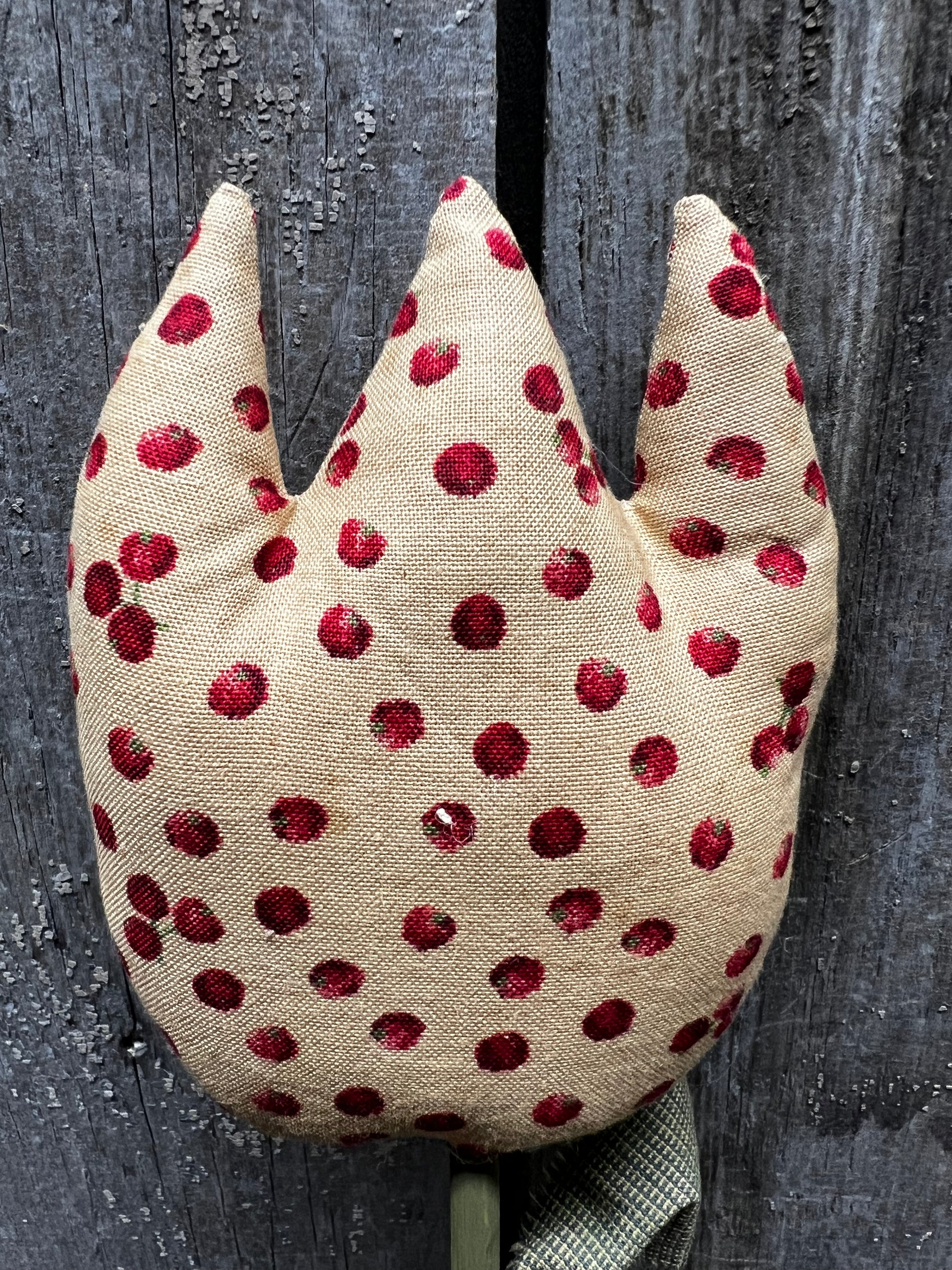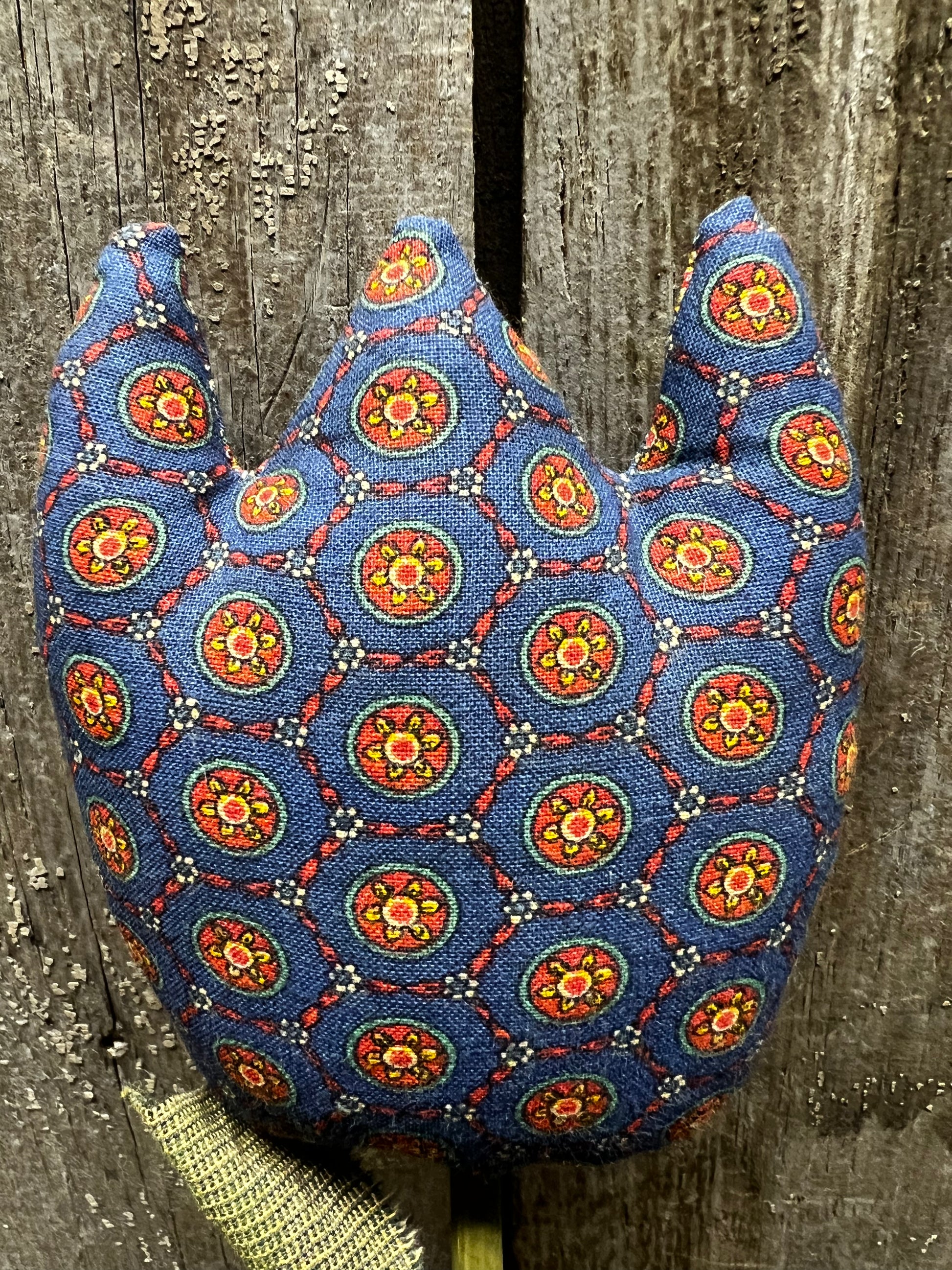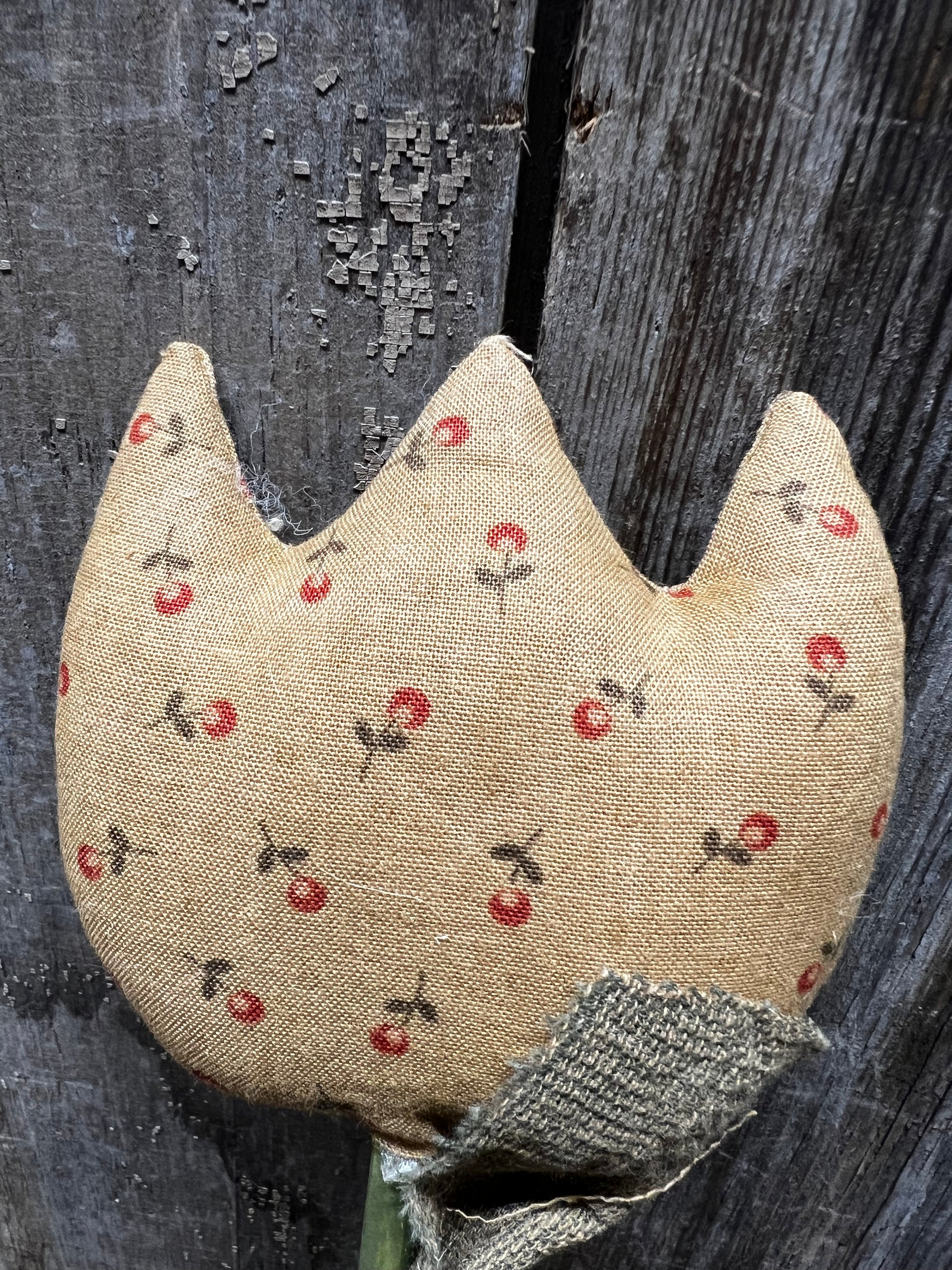 Lovely fabric patterns make beautiful tulips. Hand made in PA, Tulip sizes are 3.5" to 4" high and the "stem" sticks vary in length from 8.5" to 10". Sold by the pattern and not size, we will choose a selection of various sizes. Not all sizes shown.