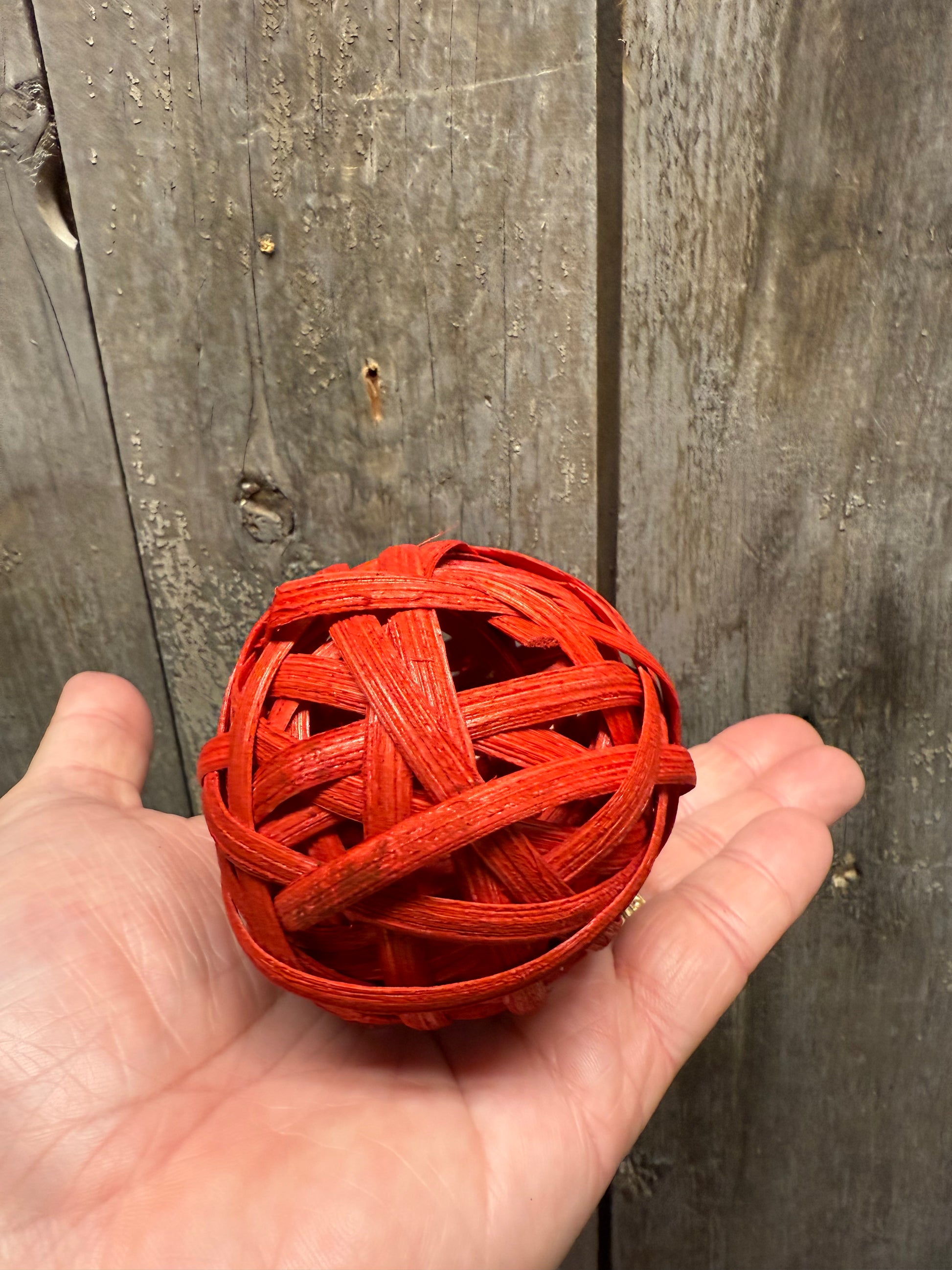 Natural reed pieces wrapped into a ball form; lovely on a tree, strung into a garland, in a bowl or jar or trencher. Some may be slightly "out of round."