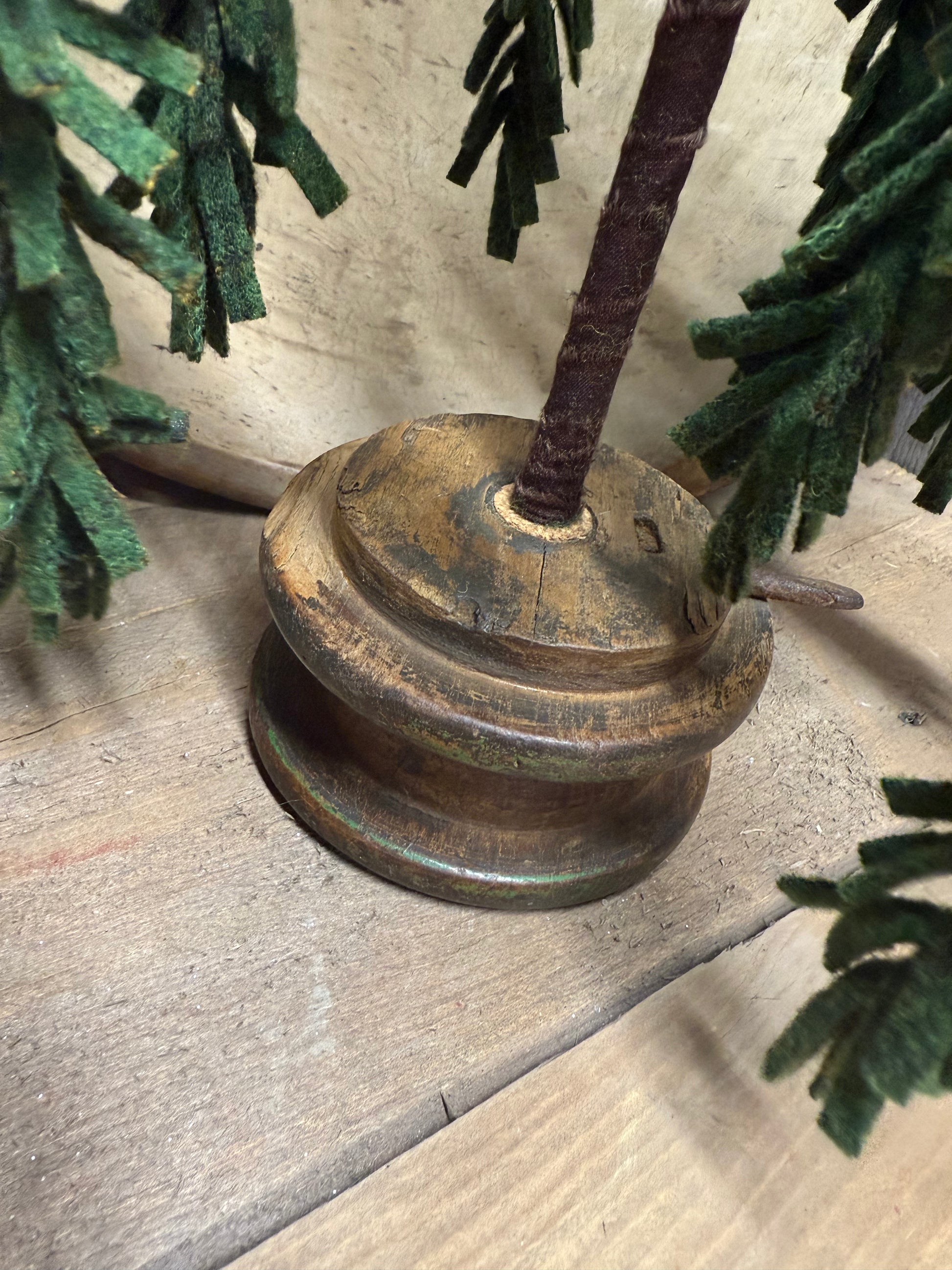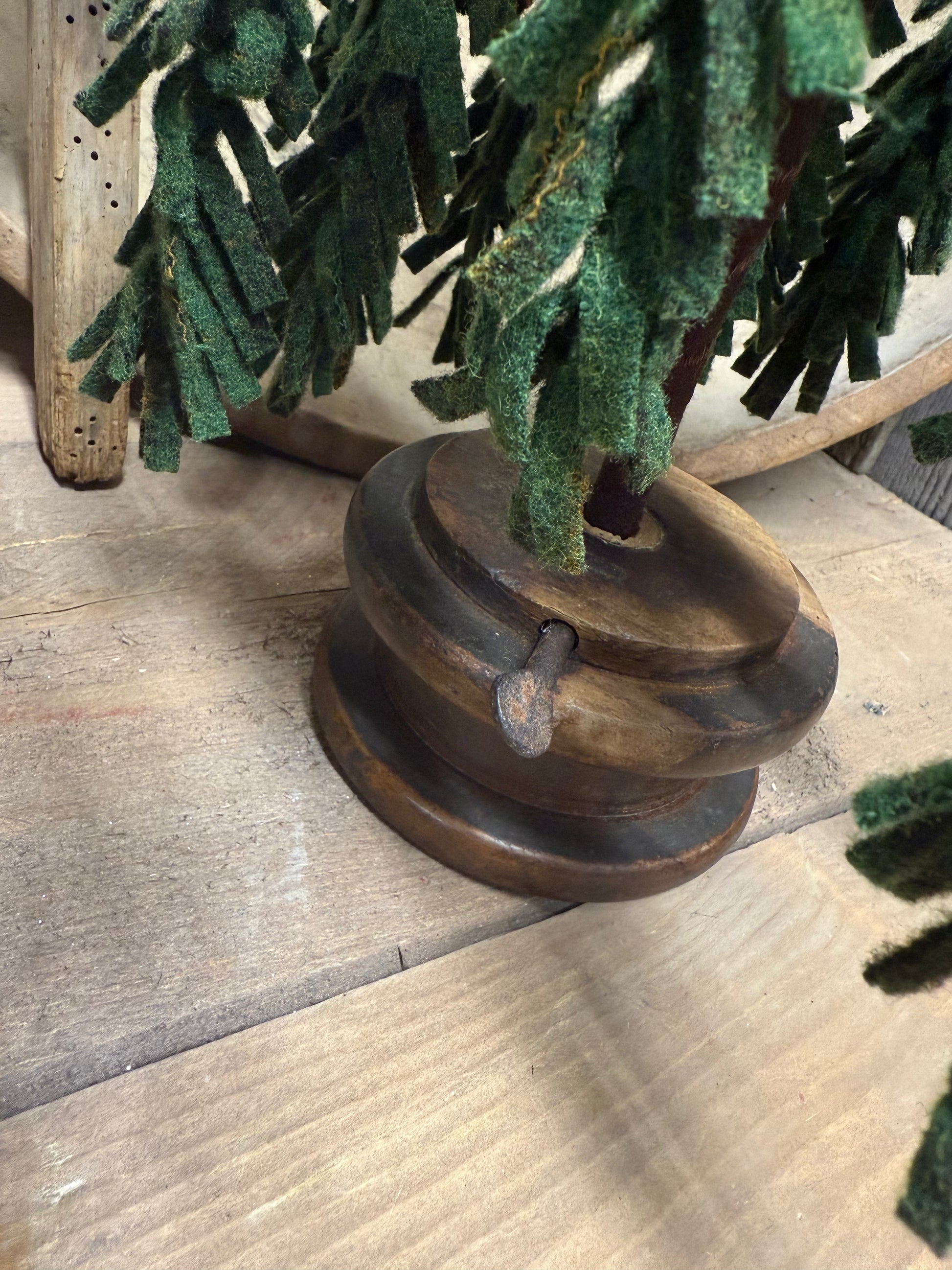 Made In PA, the Willow Trees are made from twisting Wool strips and attaching them to an old bobbin used as a base. The "trunk" is wrapped with brown cloth to give a lovely finished look. Add fairy lights to bring a bit of shine if you would like. Branches can be carefully repositioned. A treasure for sure! Three sizes, 14", 20" and 24". The 24" is shown in the single photo.
