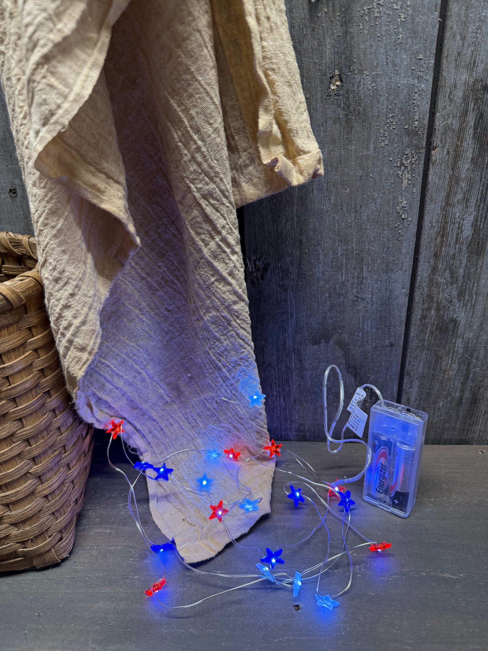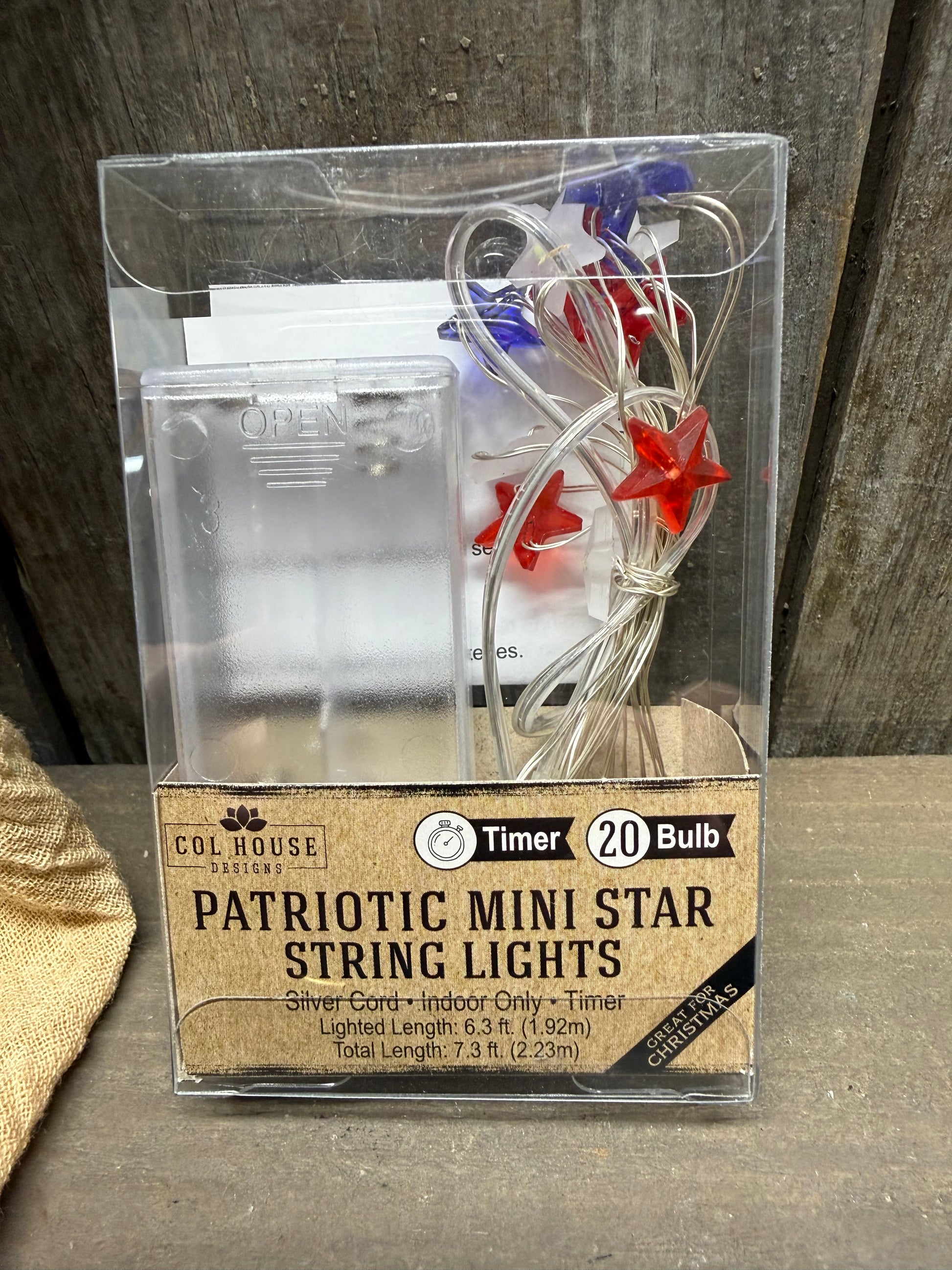 Wire Lights, 20 Bulb, TIMER, MINI STAR PATRIOTIC